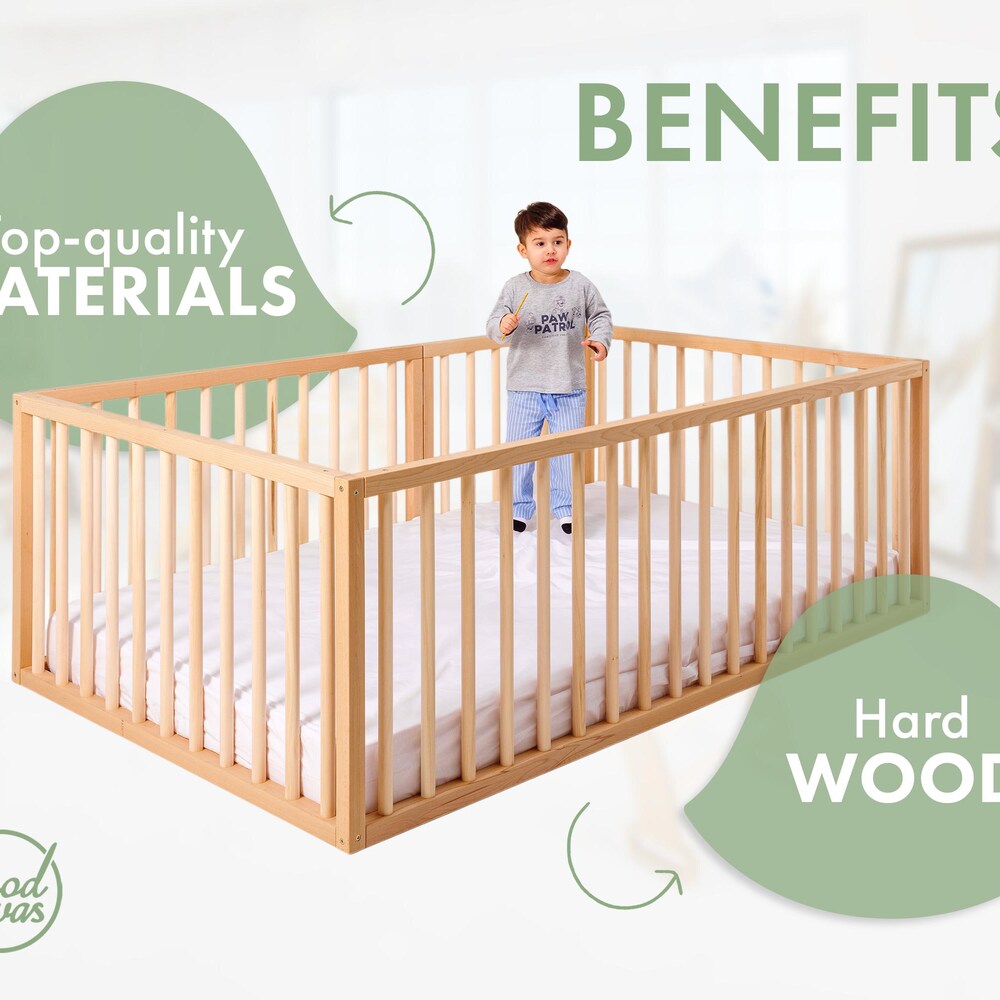 Montessori floor bed, Toddler bed frame, Wooden Playpen baby, Kids bed, Baby Gift for kids, Montessori beds, Play pen toddler, Baby playpen