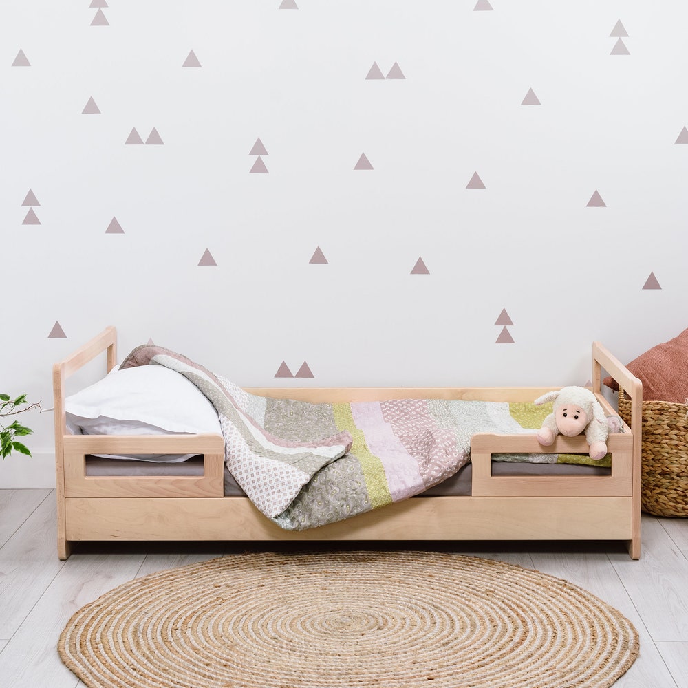 Introducing the pinnacle of children’s autonomy during the toddler years – our Montessori Floor Bed without Slats, thoughtfully handcrafted by Woodjoy, creators of innovative and versatile Montessori kids’ furniture. Designed to nurture your child’s independence, this floor bed is meticulously tailored to accommodate a 140 x 70 cm (55.2 x 27.6 inches) mattress. It provides a cozy haven for your toddler to explore their newfound freedom, fostering an environment of self-sufficiency. Crafted with a keen attention to detail, this bed arrives in a ready-to-assemble format, ingeniously packaged as a flat pack complete with all necessary screws. Please be aware that the mattress is not included in the package.