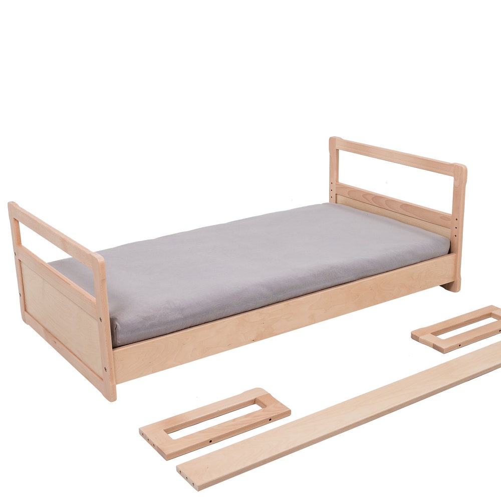 Adjustable Toddler and Kids Bed | Wooden Floor Bed with 6 Height Modifications | Modern Montessori-Inspired Style | Bed for Growing Children