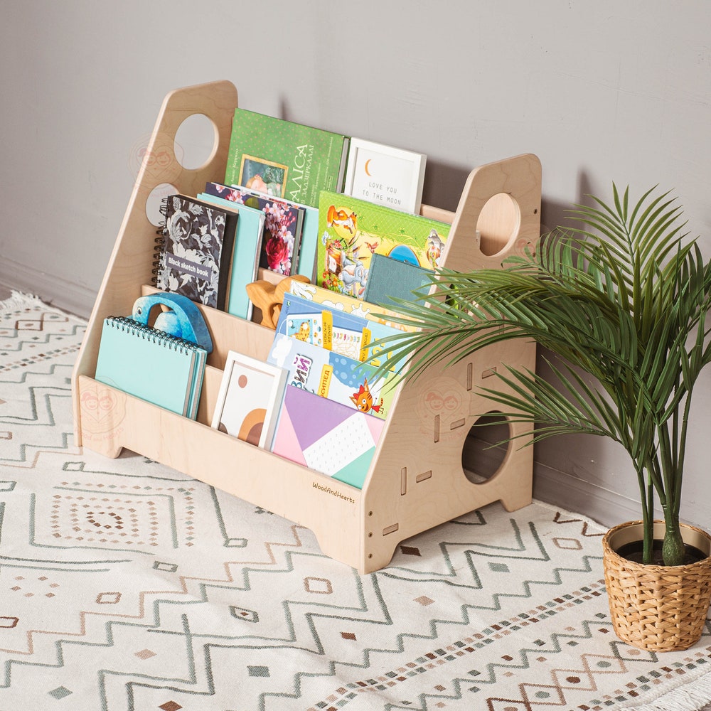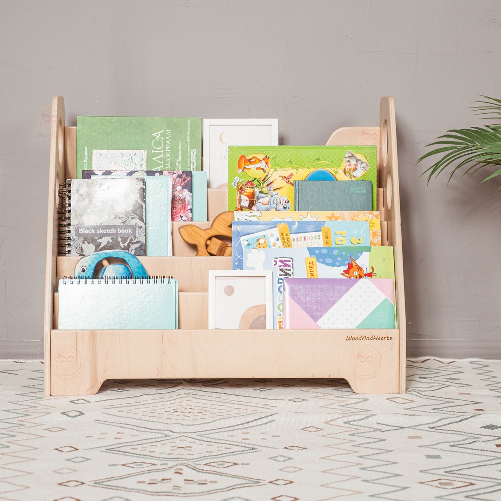 Montessori Floor Bookshelf, Toddler Bookcase, Kids Wooden Storage, Nursery Frontfacing Bookshelf, Montessori Kids Furniture