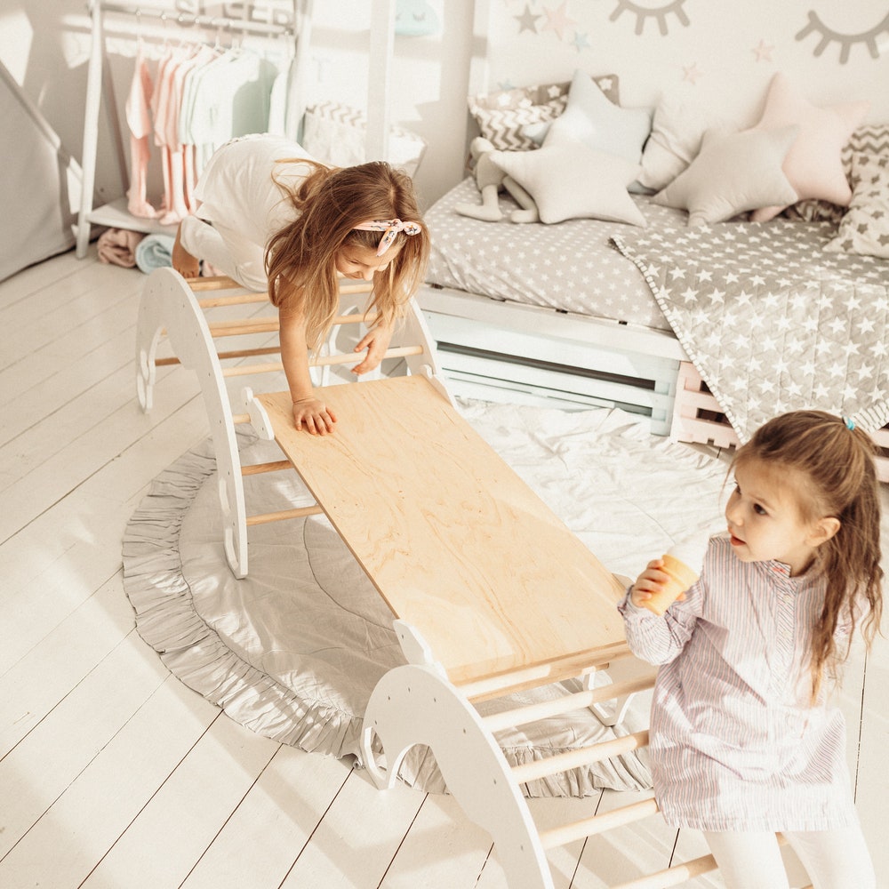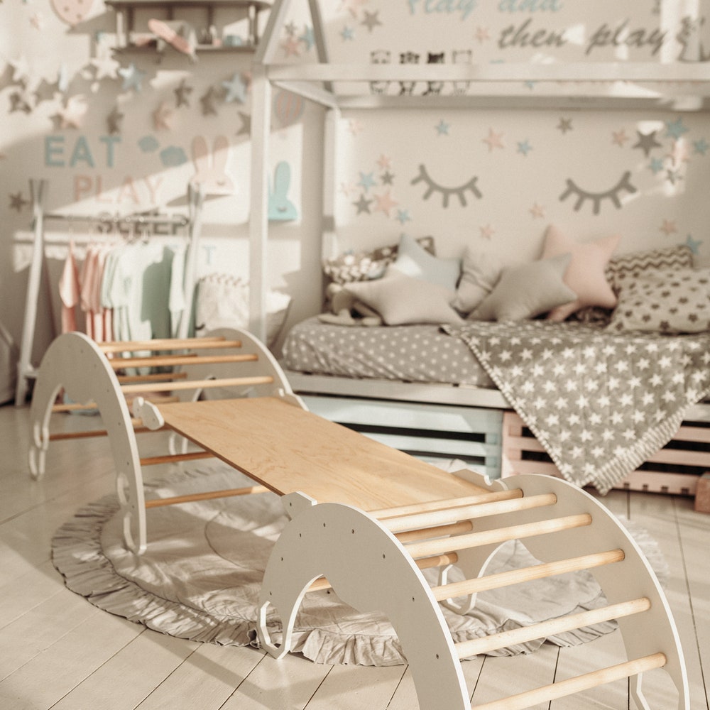 Montessori furniture Set of three items: two Wooden climbing Arch + Climbing Ramp, Wooden activity gym Toddler climber Indoor playground