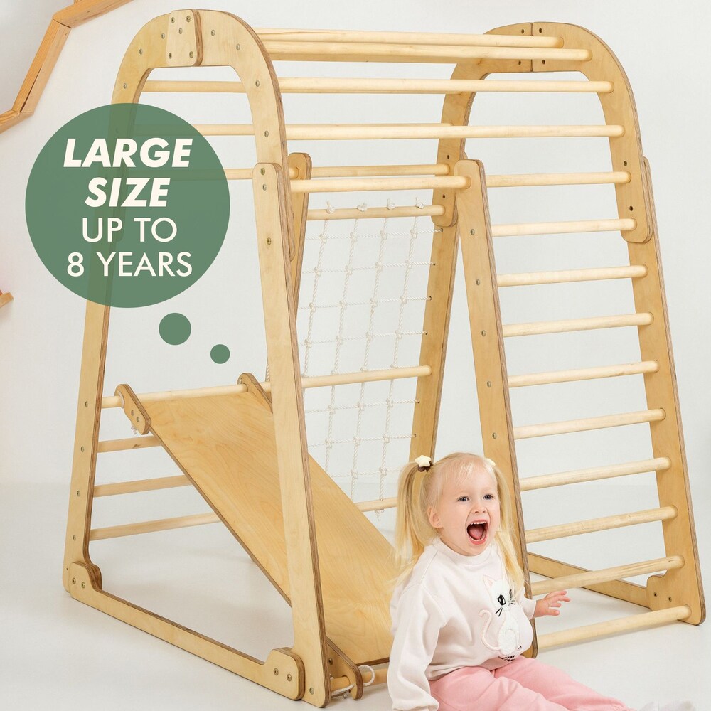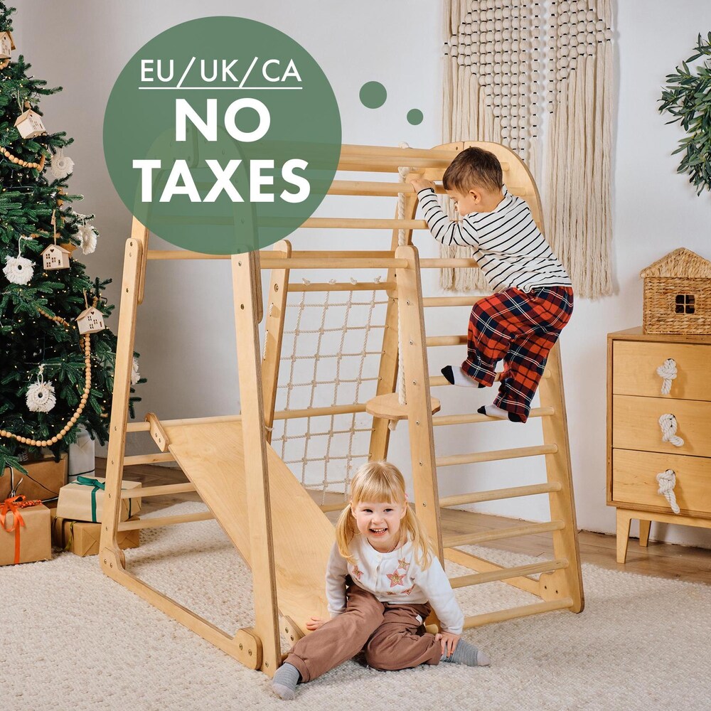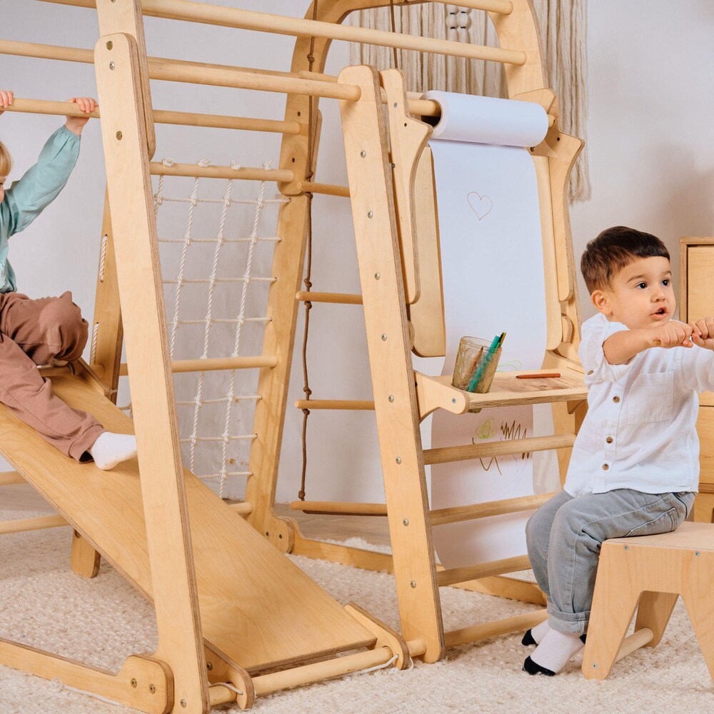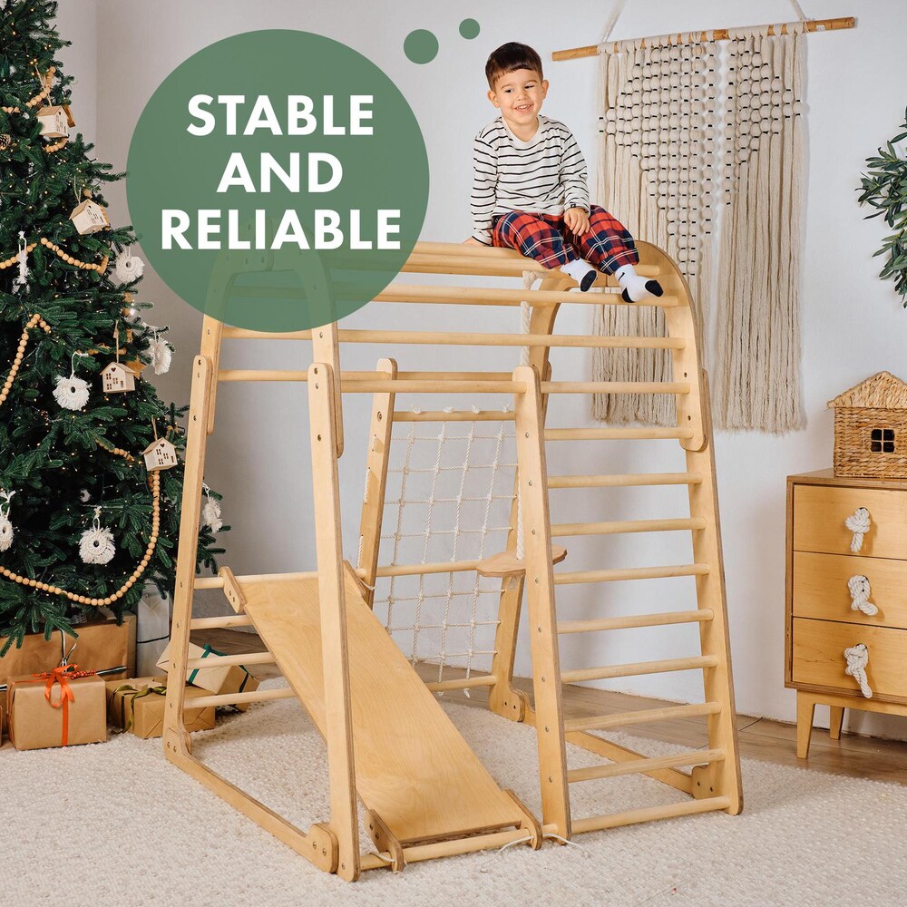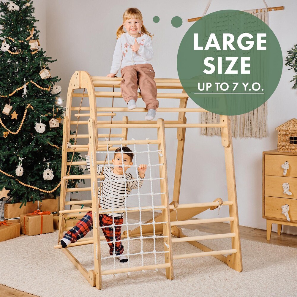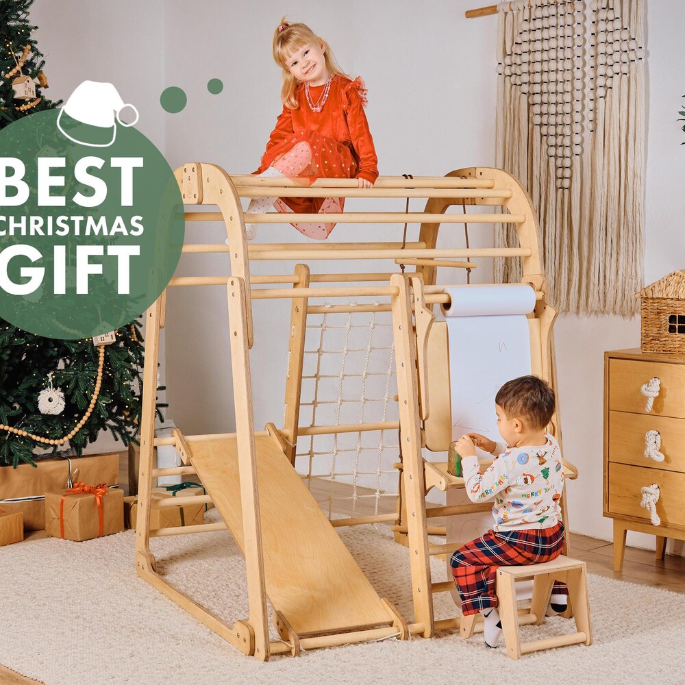 Montessori indoor playground for kids, Сhildrens Climbing Frame with Slide and Jungle gym set, Wooden Toys, Kids Christmas Gifts