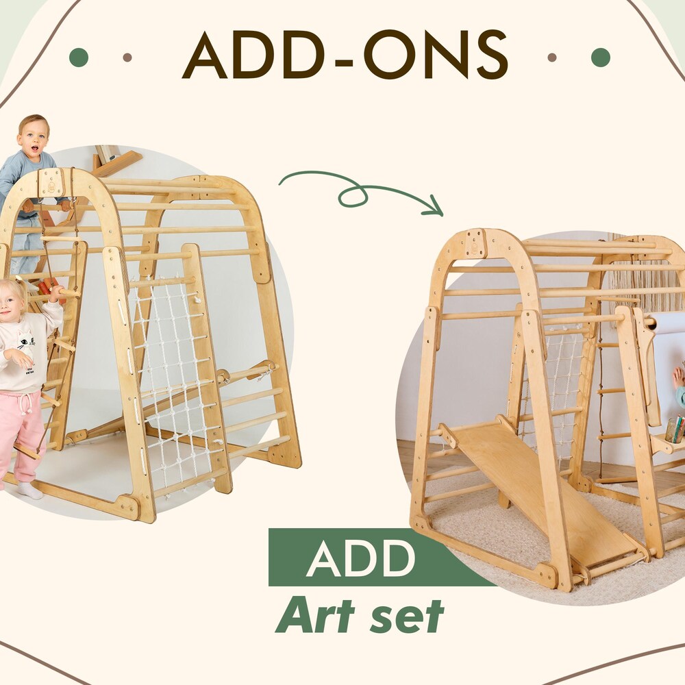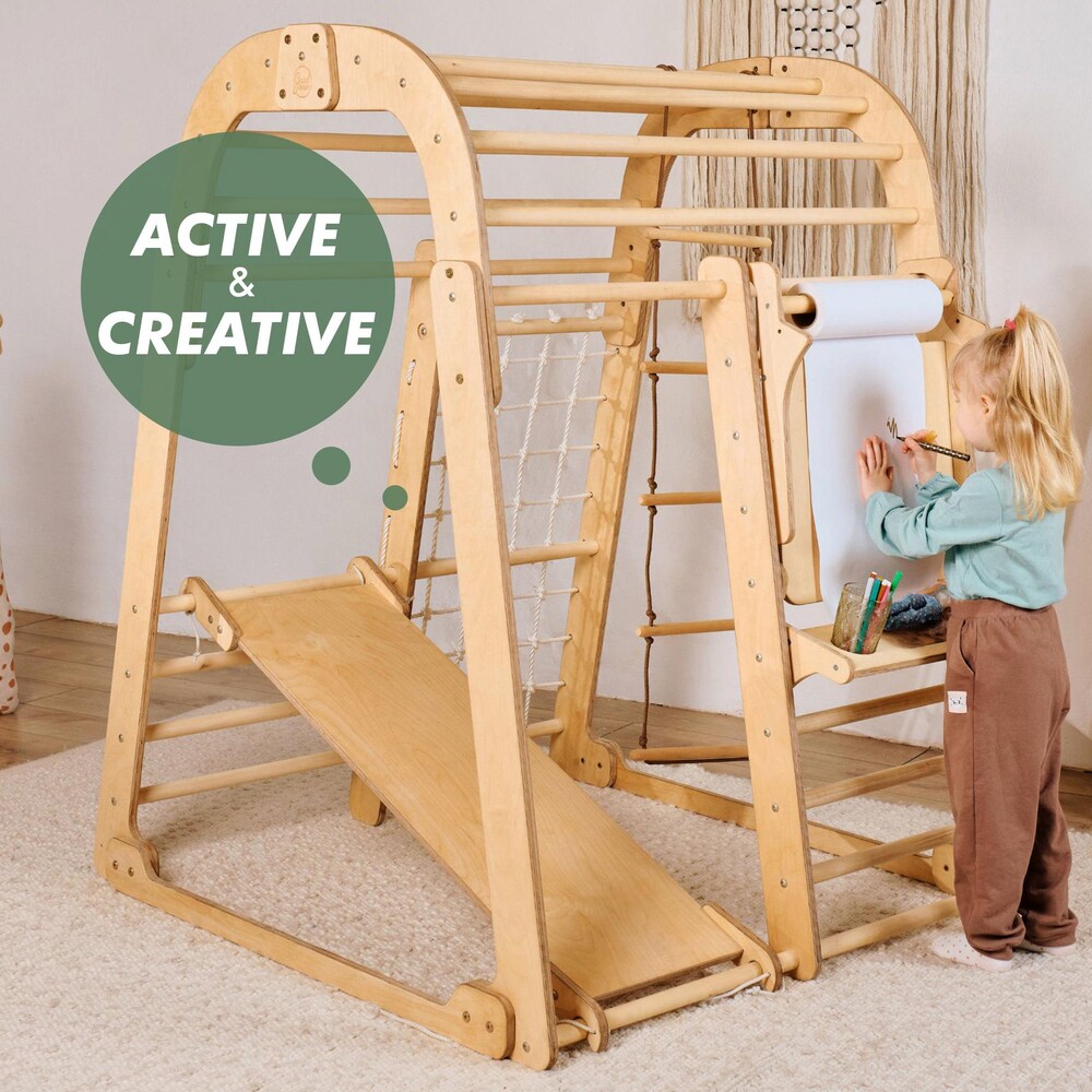 Multi-functional Montessori-style climbing structure designed to engage, entertain, and help develop your little ones! Inspired by the Montessori method, our Kids Playground encourages children aged 3 to 8 years old to explore and develop essential skills like balance, coordination, and motor skills, all while having loads of fun.