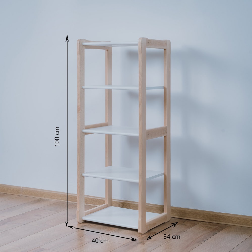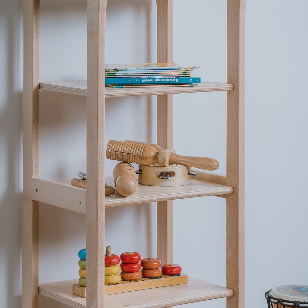 Discover the Woodjoy Montessori MAXI Shelf—an embodiment of our commitment to crafting multifunctional, Montessori-inspired kids’ furniture that fosters creativity and organization. Elevate your child’s space with the Montessori MAXI shelf, featuring spacious, elevated shelves spanning five levels, purposefully designed for storing toys and books. These shelves offer ample depth, accommodating even larger toys and accessories, thus nurturing your child’s holistic development. The MAXI shelf seamlessly harmonizes with our Child Clothing Racks, providing an integrated storage solution that encourages a clutter-free environment while promoting independence and orderliness.