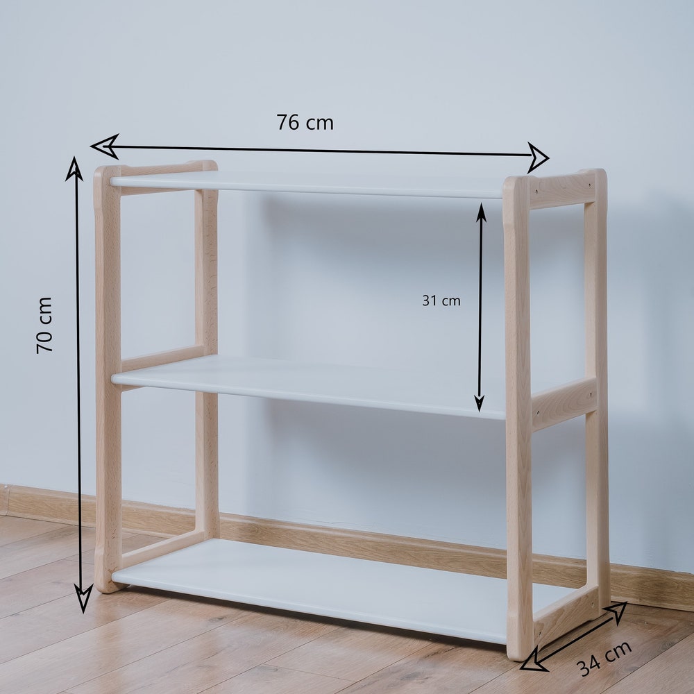 Presenting the Woodjoy Montessori MIDI Shelf—a remarkable piece from our collection of multifunctional, Montessori-inspired kids furniture. The Montessori MIDI Shelf features low, open shelves thoughtfully arranged across three levels. These shelves are thoughtfully designed to house your child’s cherished toys and treasured books. Their generous depth accommodates even larger toys and accessories, fostering your child’s holistic development. Rooted in the Montessori philosophy, the open design of the Montessori MIDI Shelf cultivates self-directed learning and independent exploration. Watch as your child engages with their toys and books, fostering a sense of ownership, creativity, and intellectual growth.