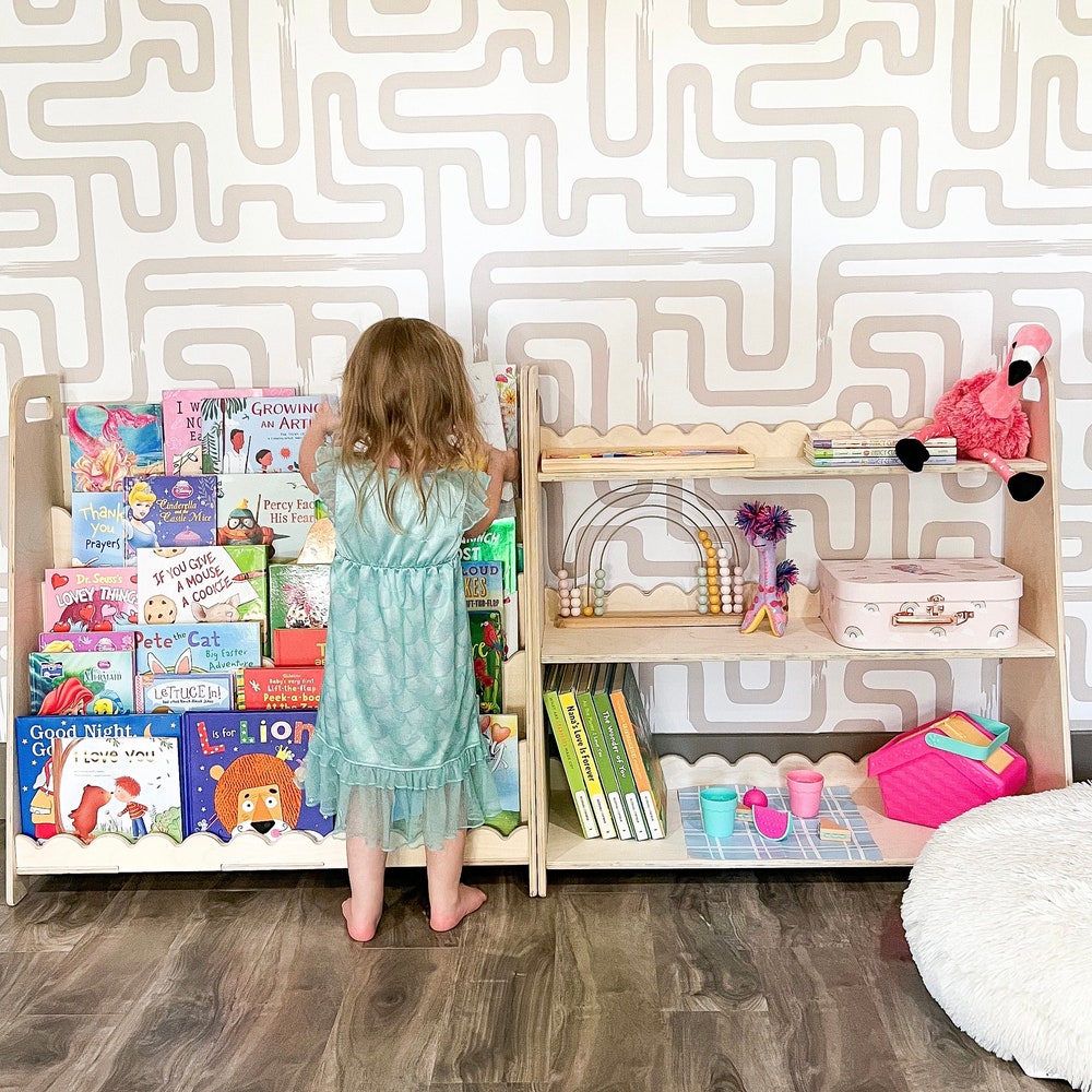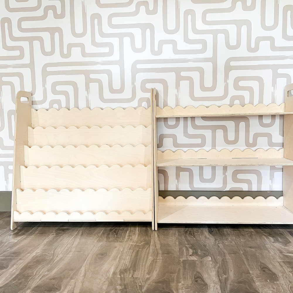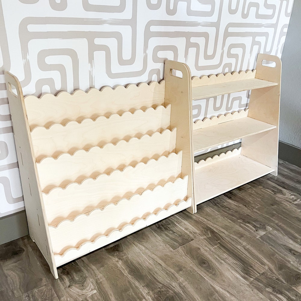 Montessori Scalloped Toy Shelf Bookshelf set Montessori Wooden Furniture Combo Nursery Gift Wooden Toy Shelf Toddler Gift RAY+ROY