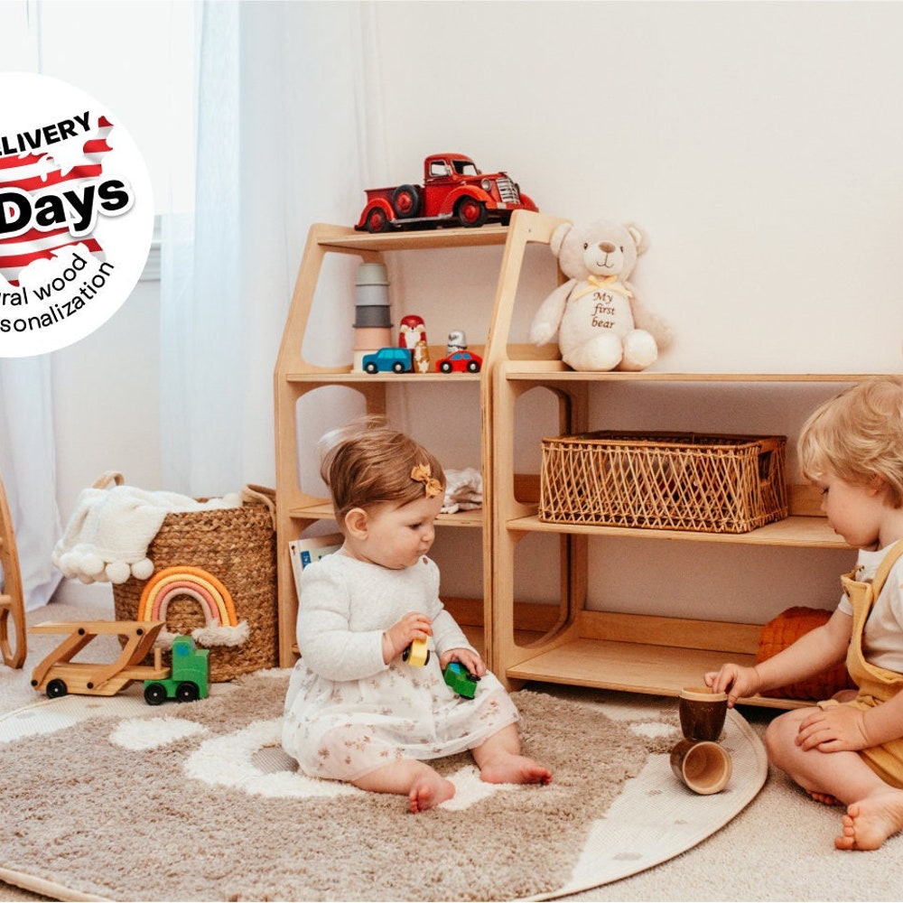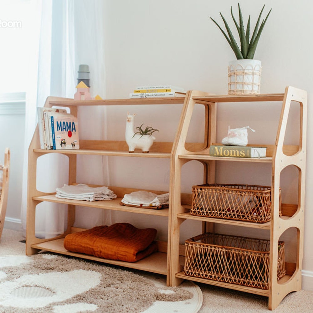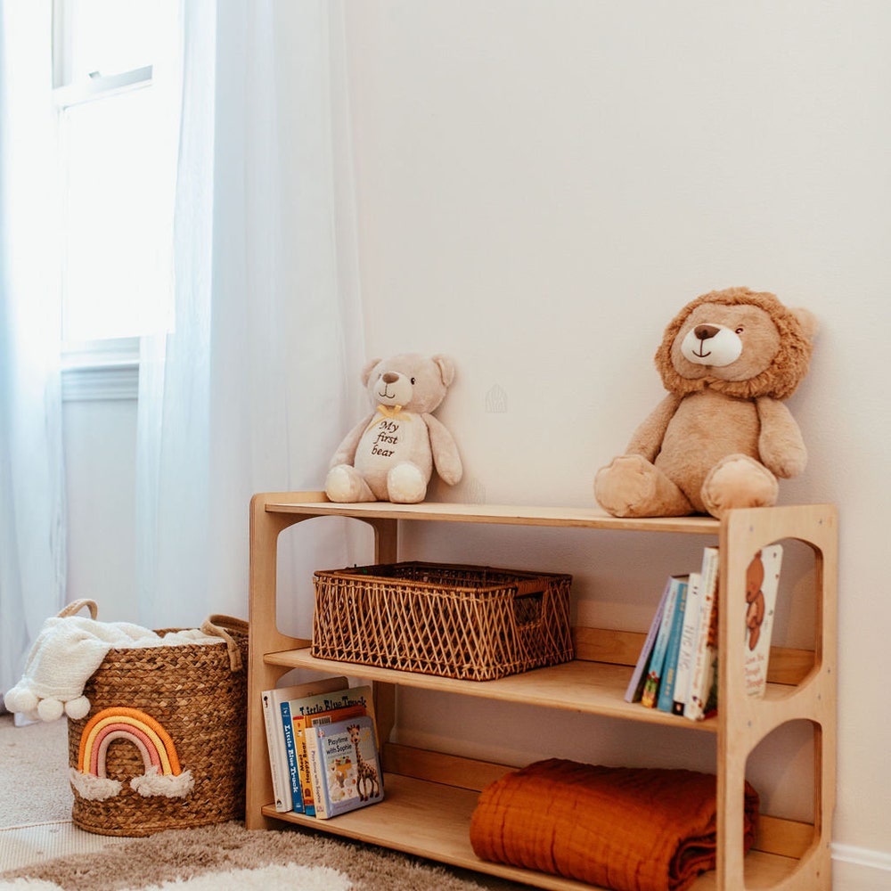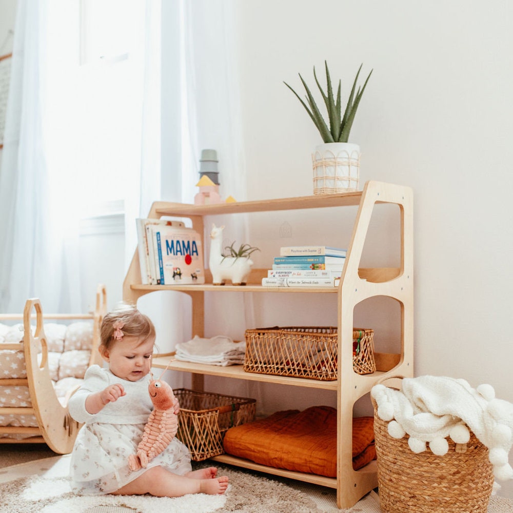 Montessori shelf, Toddler bookshelf, Montessori furniture, Nursery toy shelves, Toys storage Wooden bookcase Montessori regal