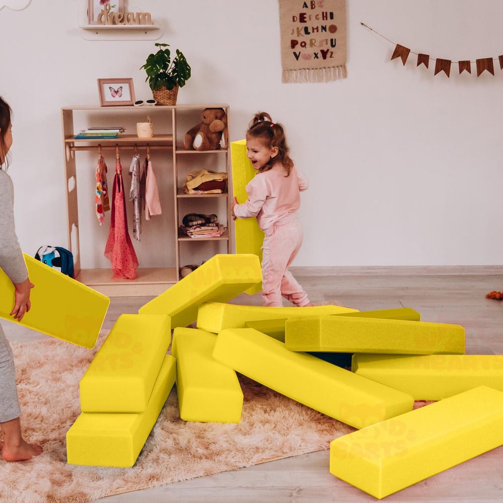 Bring endless fun and creativity to your child’s playtime with our Soft Large Building Blocks! These blocks are designed for safe, active play and are perfect for building imaginative structures or creating a soft play mat for WoodandHearts climbing furniture. They come in vibrant colors and soft textures that make them ideal for both solo play and interactive family time.