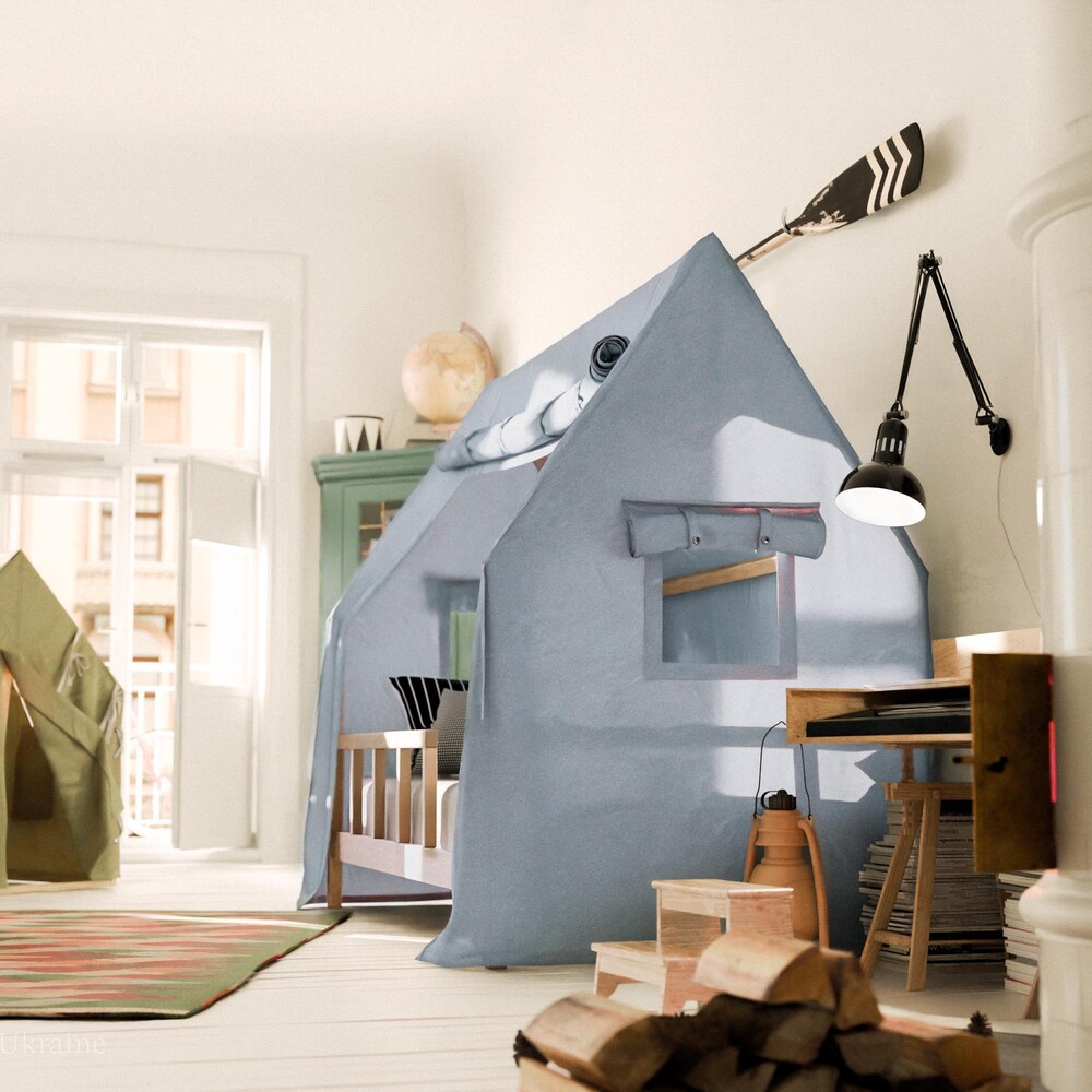 Additionally, the bed comes with a textile canopy that transforms it into a cozy playhouse, making it not just a place for rest but also a space for imagination and play.