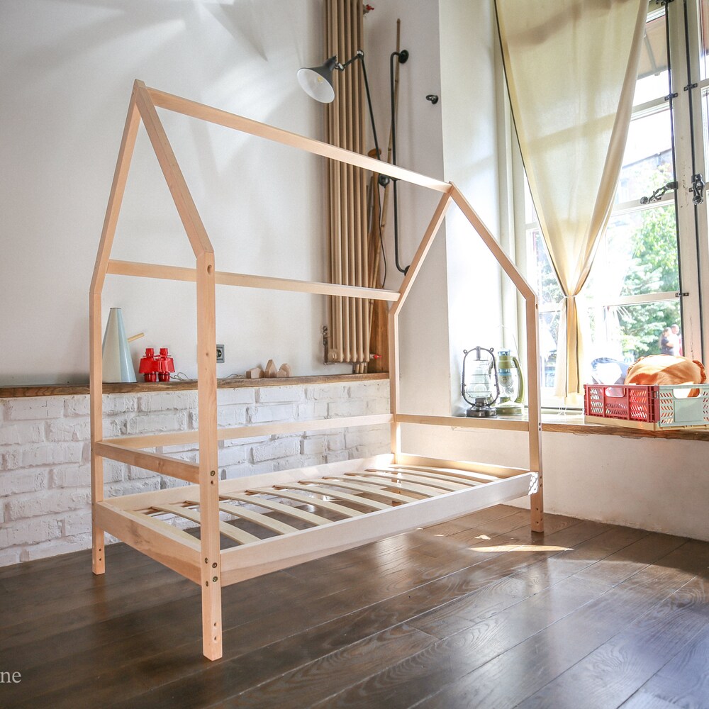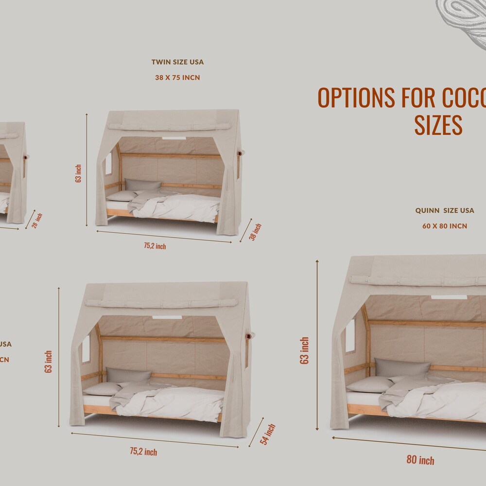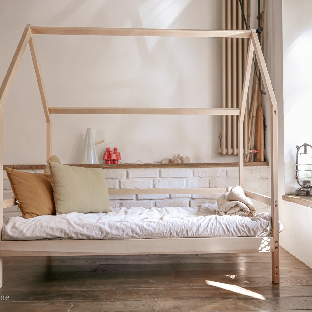 Our Montessori wooden bed, complete with a natural cotton canopy, is specially tailored for the delight of kids and toddlers. Every piece is imbued with love and meticulous attention to detail in our cozy, bespoke workshop. This bed seamlessly integrates the tenets of Montessori education with a snug and welcoming sleep haven for your little ones. The robust wooden frame ensures a secure environment, while the natural cotton canopy introduces a hint of whimsy and coziness. It stands as the idyllic space for your child to dream, play, and weave their own fantastical world. Rest assured, each facet is meticulously crafted to guarantee top-notch quality and lasting durability. Grant your child the gift of tranquil and enchanting slumber with our Montessori wooden bed.