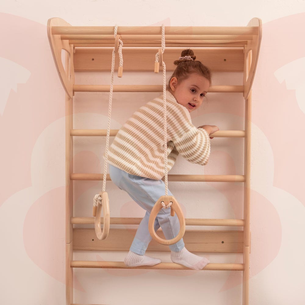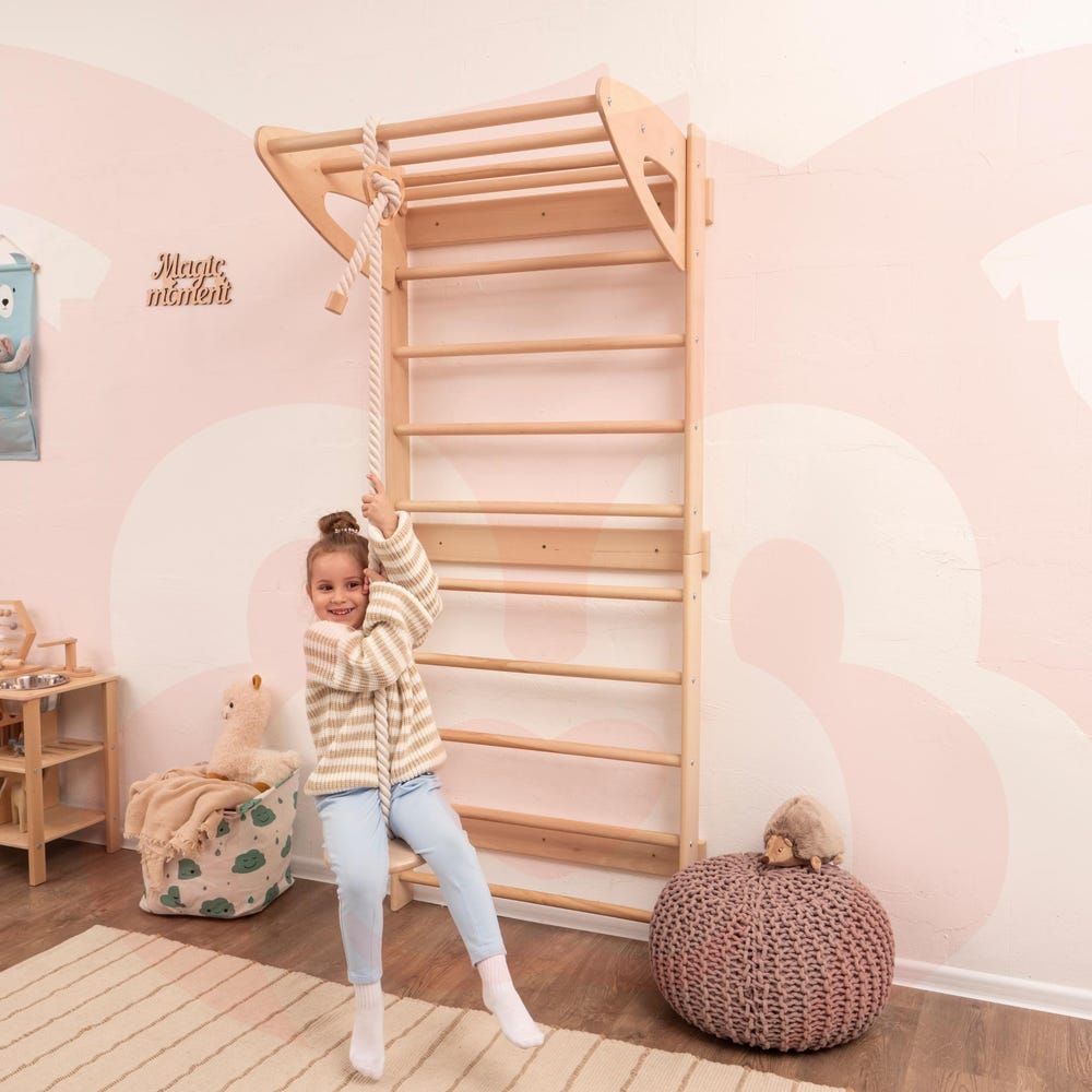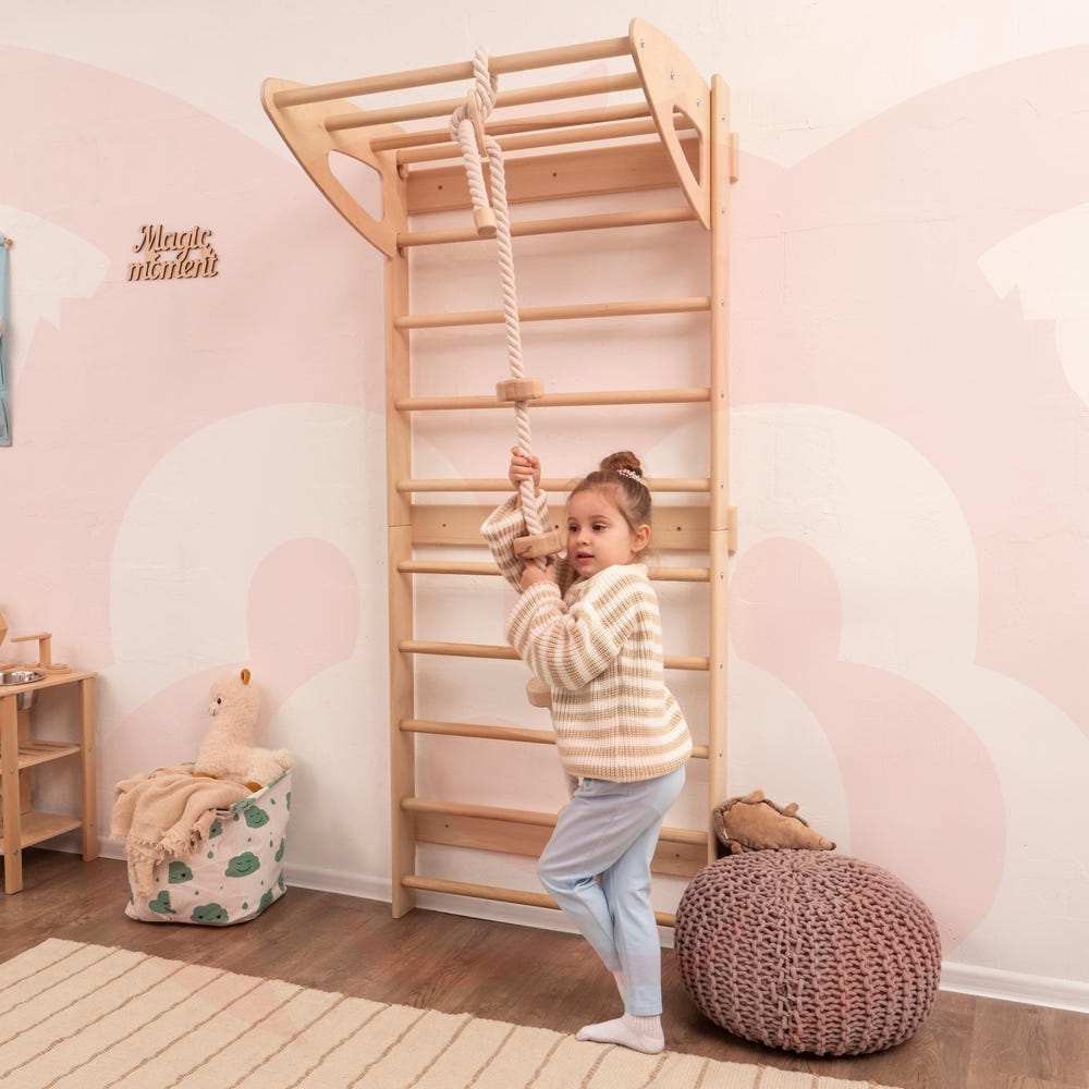 Montessori Toddler Swedish Ladder with Optional Rope Accessories: Waldorf Climbing Rope&Ladder, Baby Swing, Monkey Bars