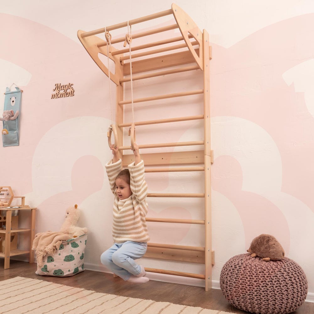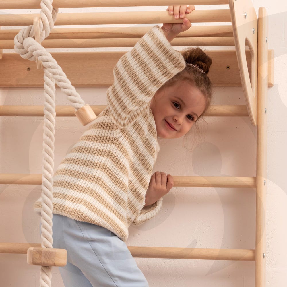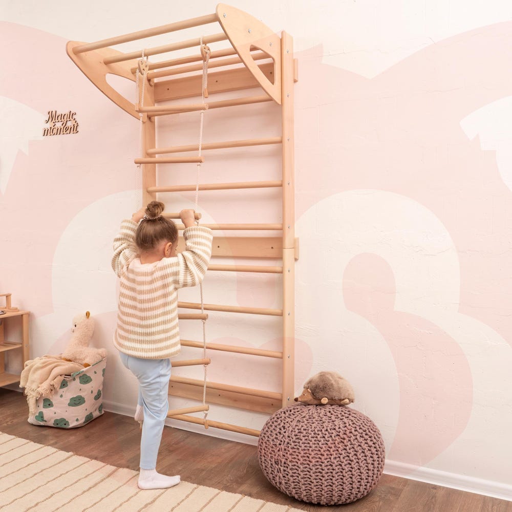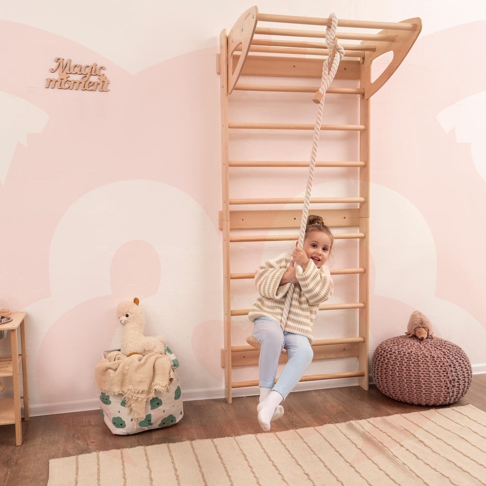 Montessori Toddler Swedish Ladder with Optional Rope Accessories: Waldorf Climbing Rope&Ladder, Baby Swing, Monkey Bars