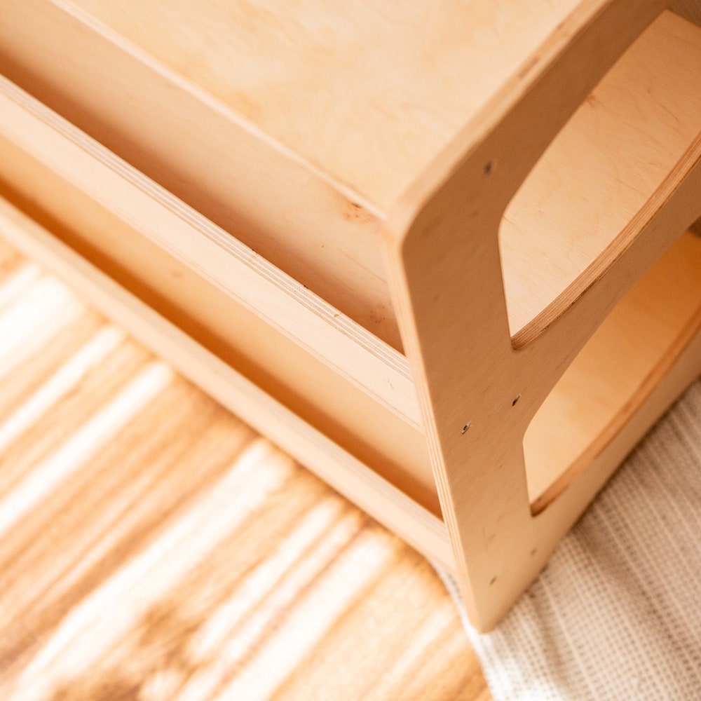 ✔️ Conforms to the Montessori method – the child can easily use the Shelf himself.