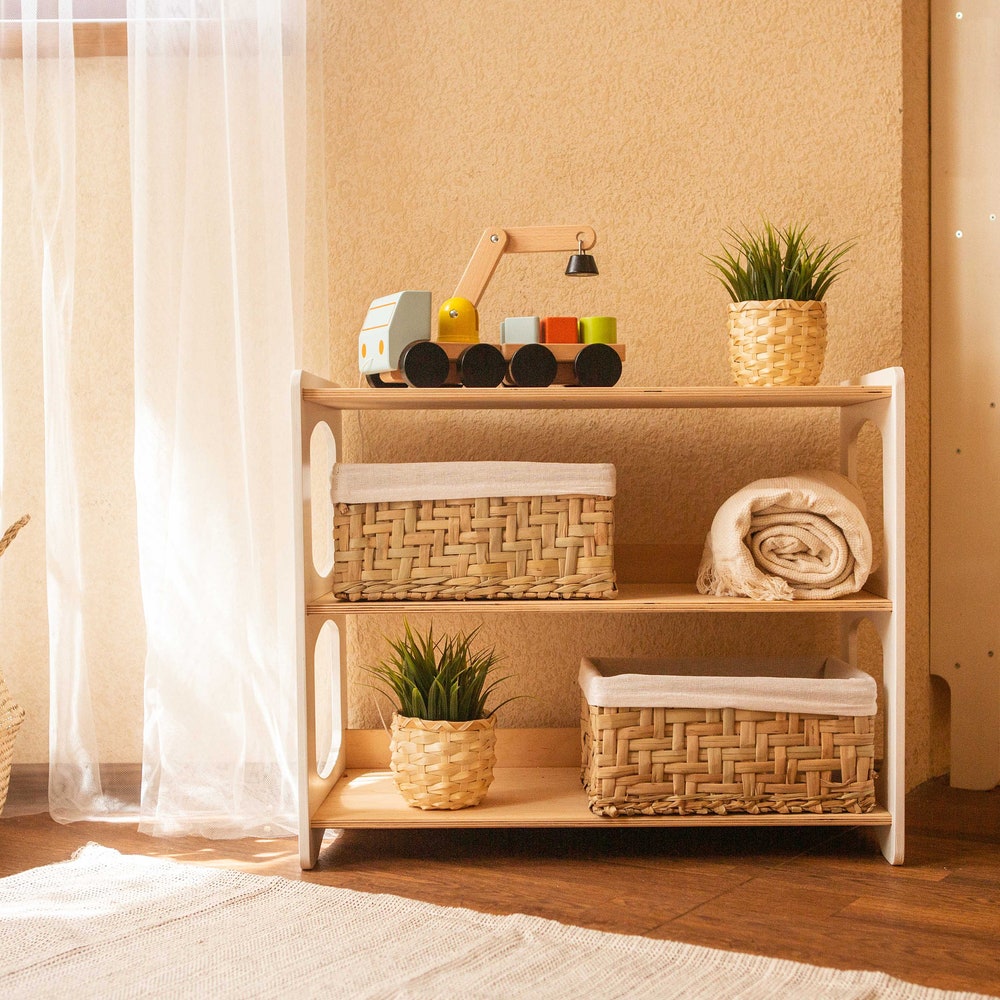 Montessori toy book shelf for kids, Modern Nursery Shelving, Montessori furniture, Wooden shelving unit, Toddler toy storage