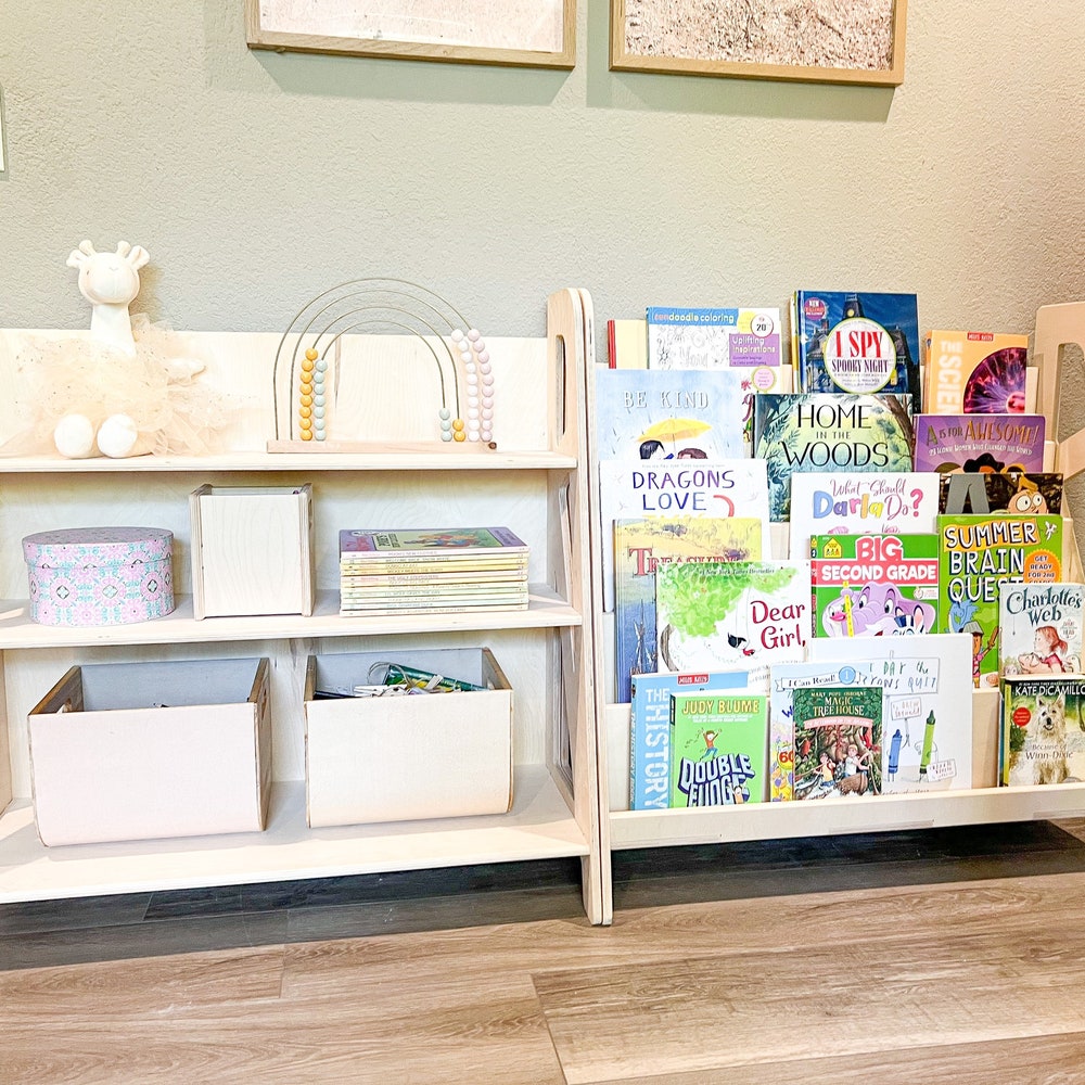 Montessori Toy Shelf Bookshelf set Montessori Wooden Furniture Combo Nursery Gift Wooden Toy Shelf Toddler Gift for Playroom SIERRA+SIENNA