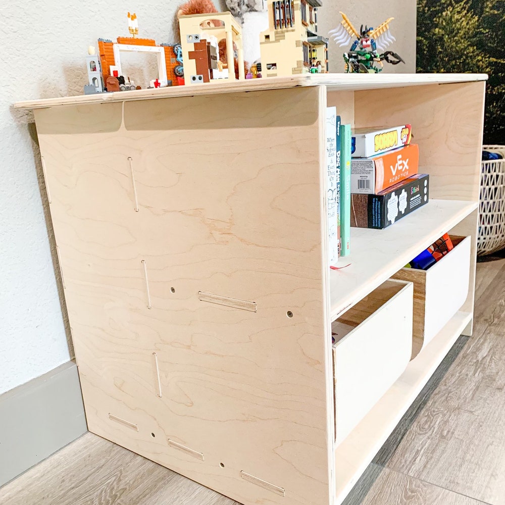 LARGE HANDCRAFTED MONTESSORI TOY SHELF WITH HIDDEN STORAGE COMPARTMENT! by BUSH ACRES.