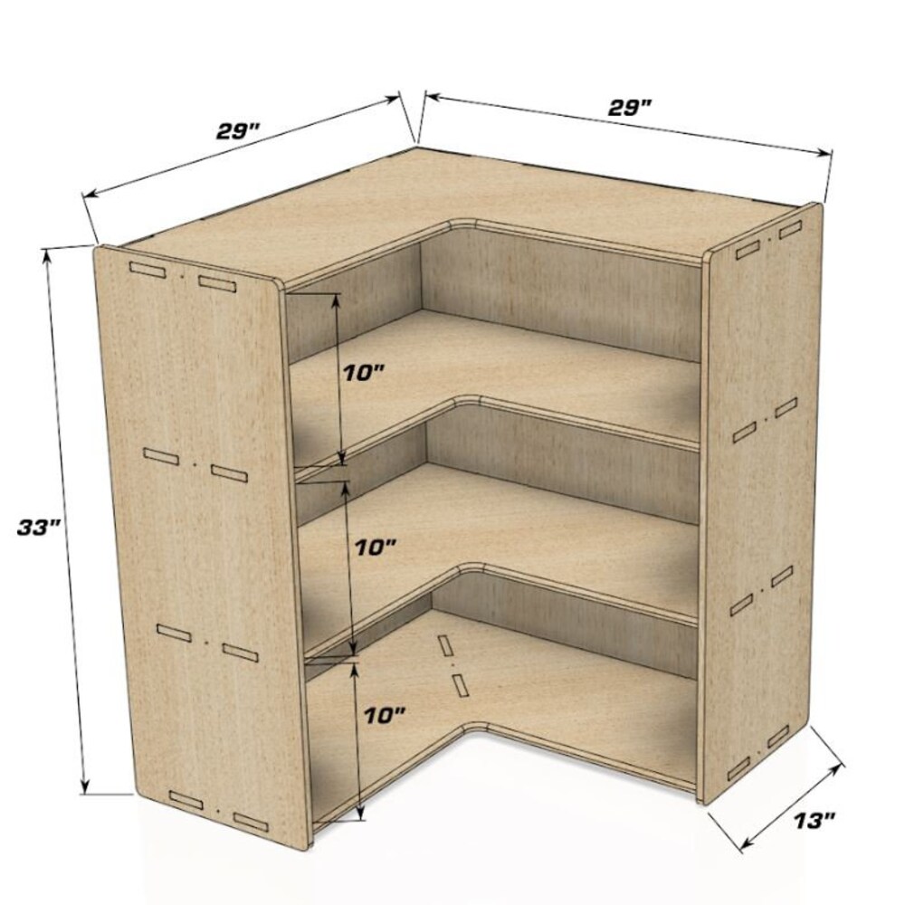 ★ Corner Shelf is 13″ deep, 33″ tall with 10″ of space between each shelf