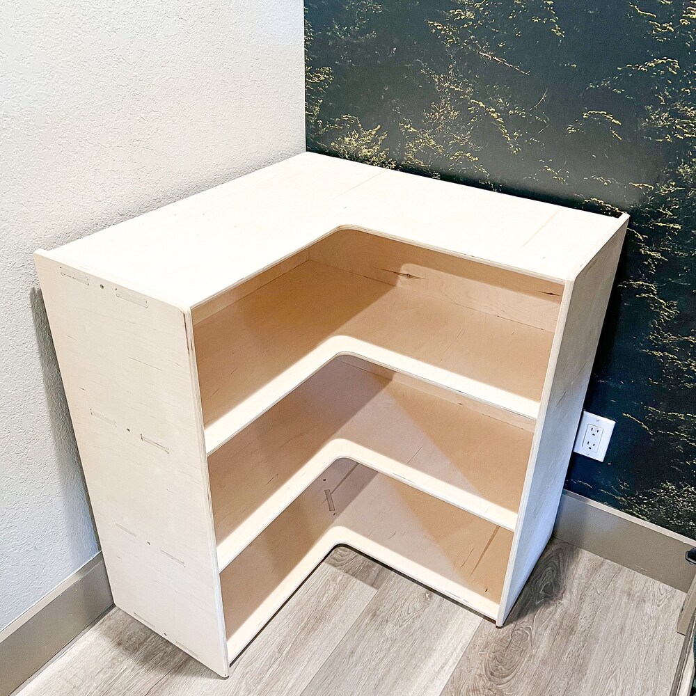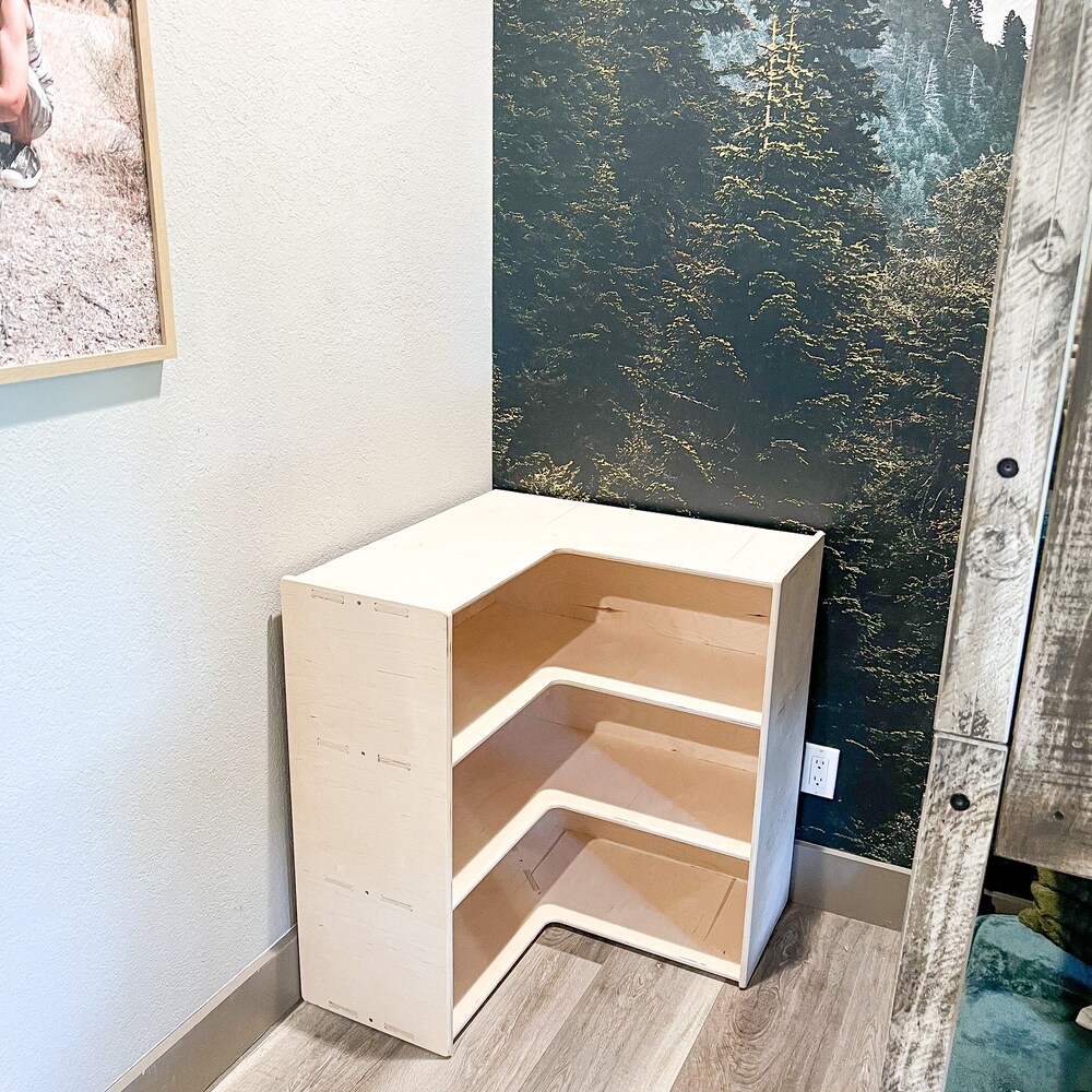 33″ TALL HANDCRAFTED MONTESSORI CORNER STORAGE SHELF by Bush Acres