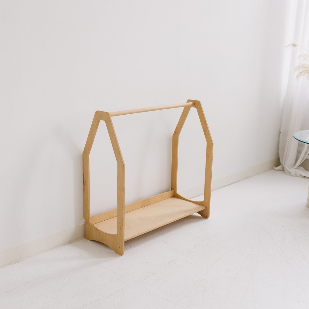 This wooden Montessori Set – Clothing Rack with Shelf + Montessori bookshelf- helps you to organize children’s space conveniently and compactly. It designed so that the child can fully use the furniture.