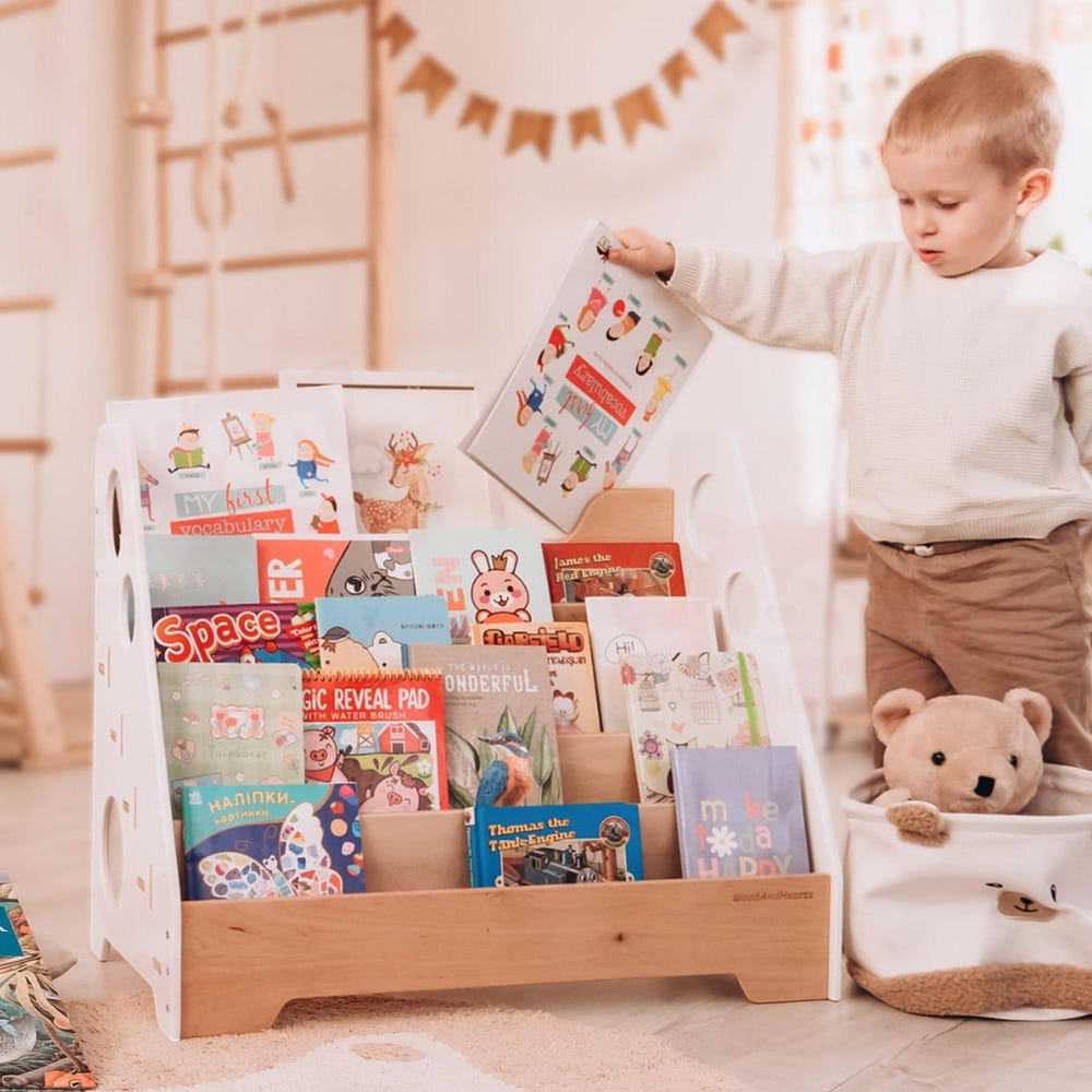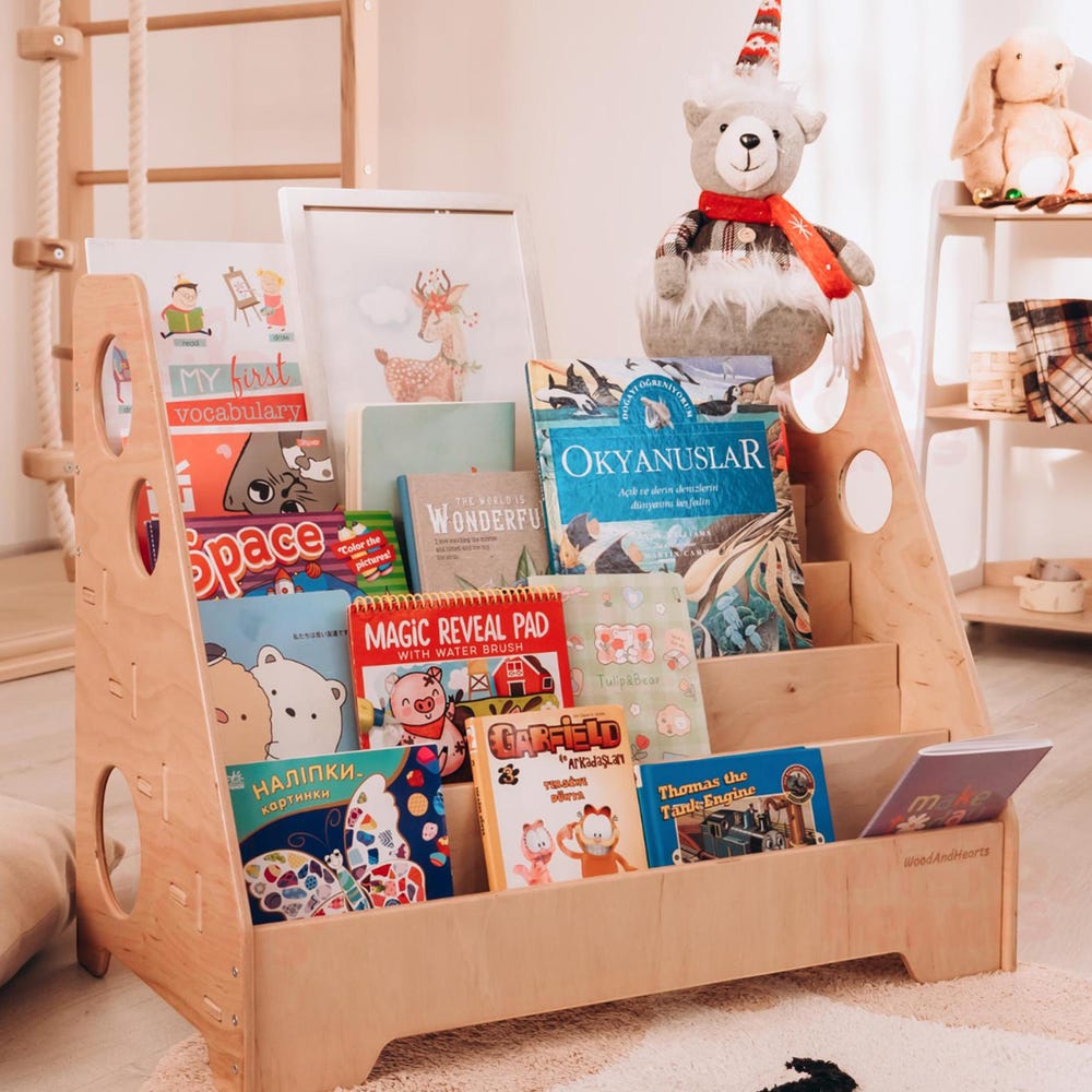 Montessori Wooden Bookshelf, Kids Room Bookshelf, Kids Toy Storage, Toddler Bookshelf for Playroom, Handmade Montessori Furniture, Bookcase