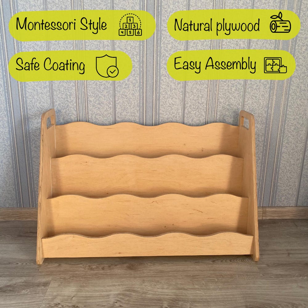 Montessori Wooden Bookshelf – Natural Kids Book Storage, Minimalist Nursery Furniture, Eco-Friendly Toddler Bookshelf