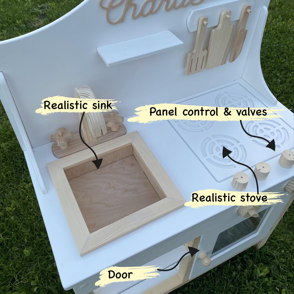 Brighten up your child’s world with our wooden play kitchen. Order now!
