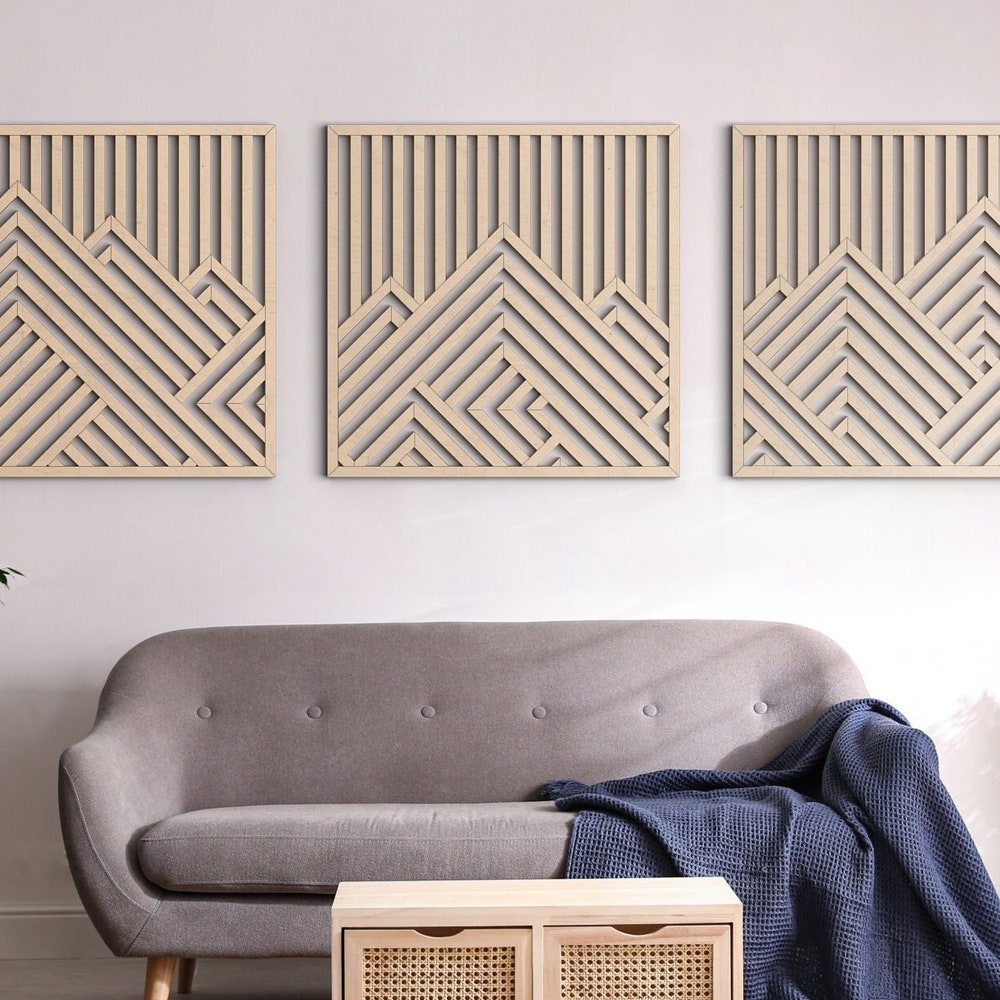 Mountains Wooden Wall Art Set | Geometric wood wall art | Modern Wood Wall Panels | Wood wall decor | Mountains wall art | Home decor