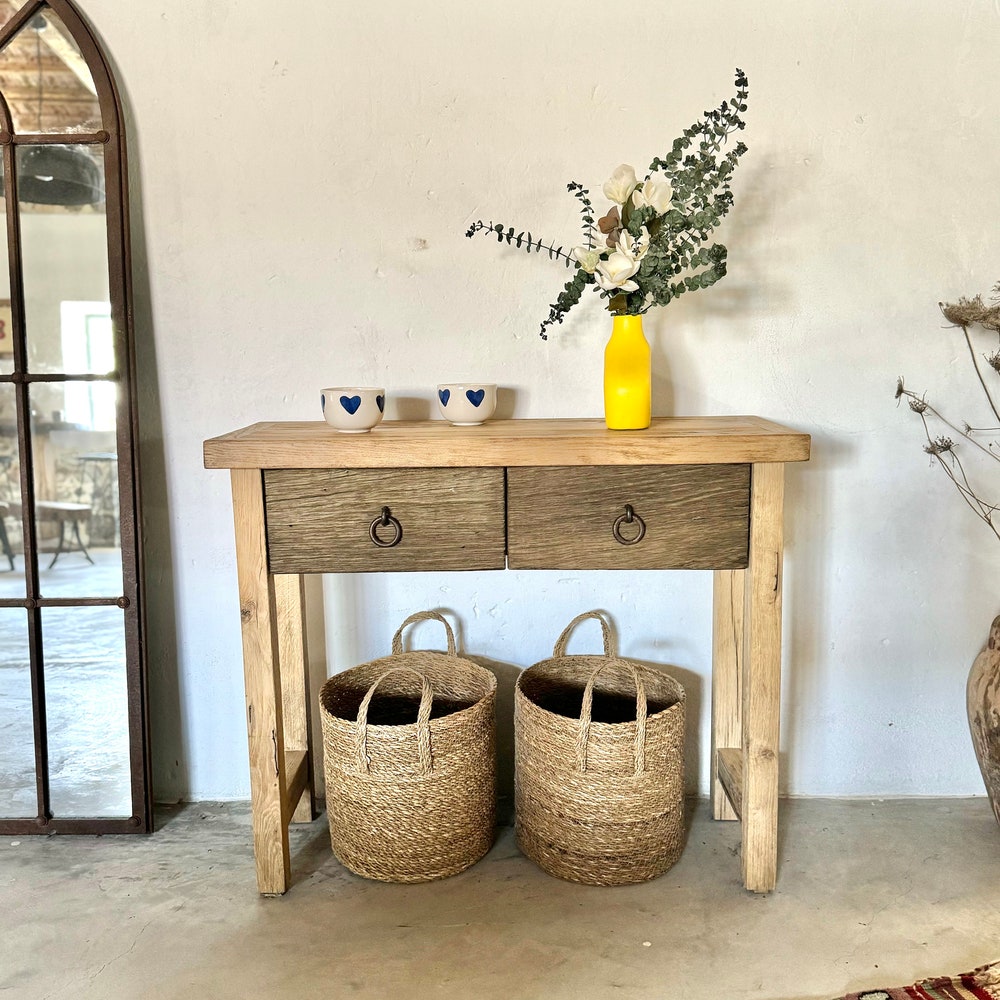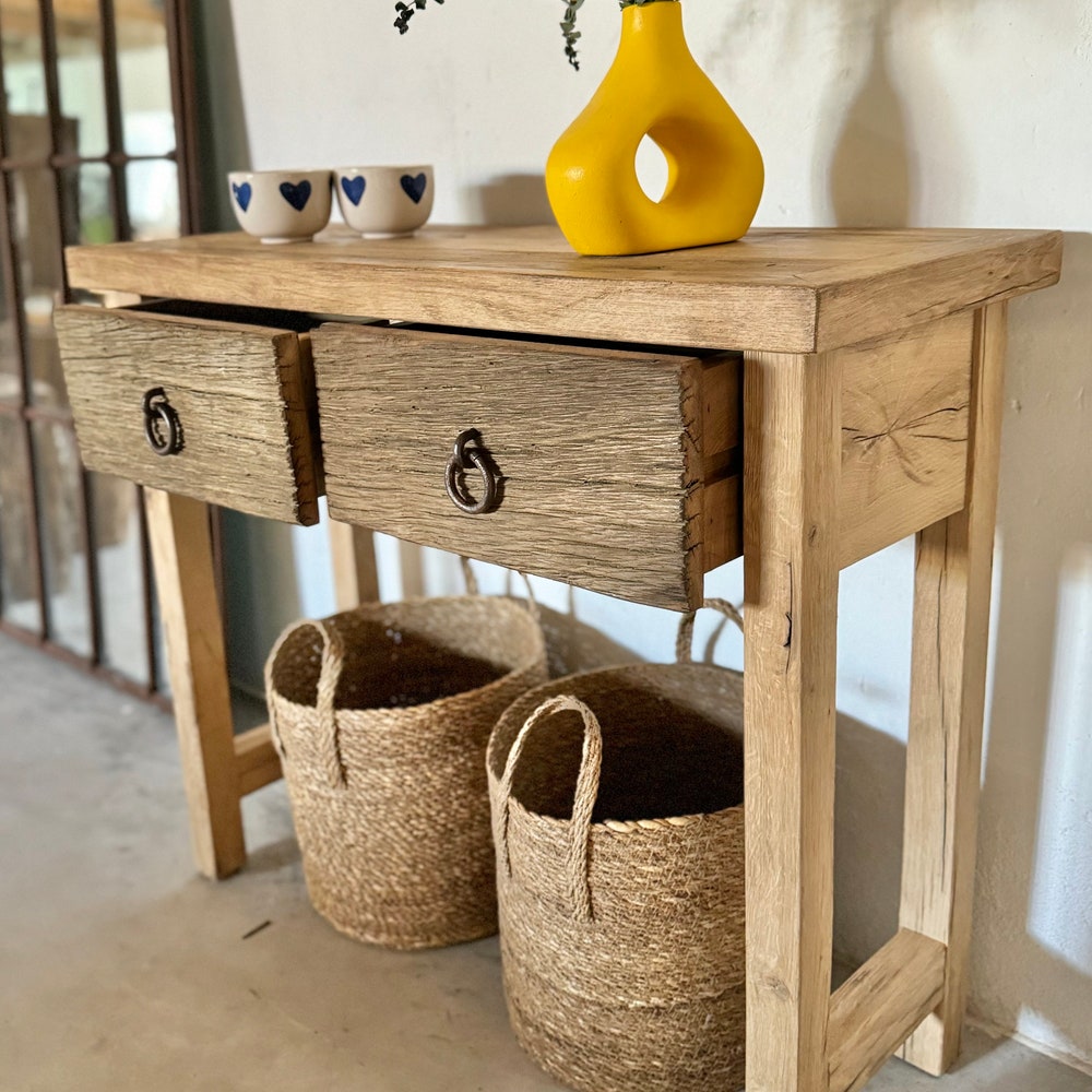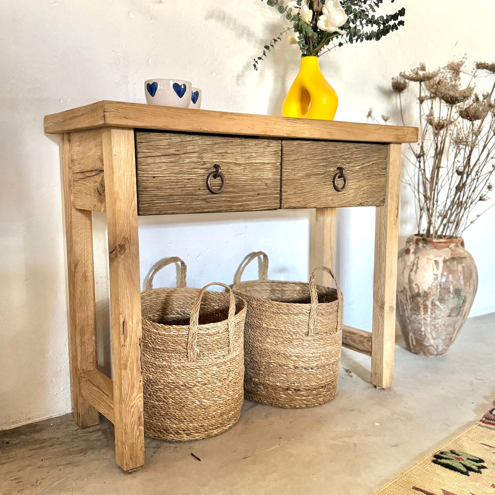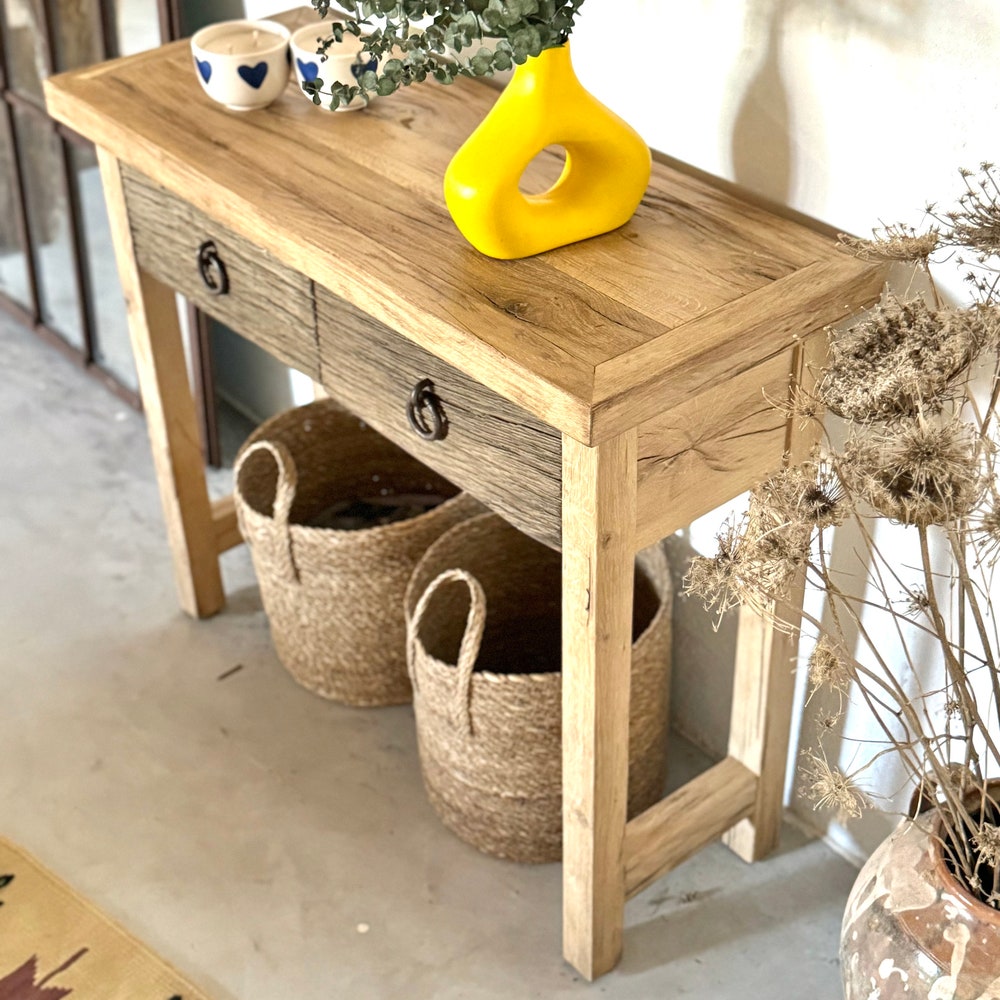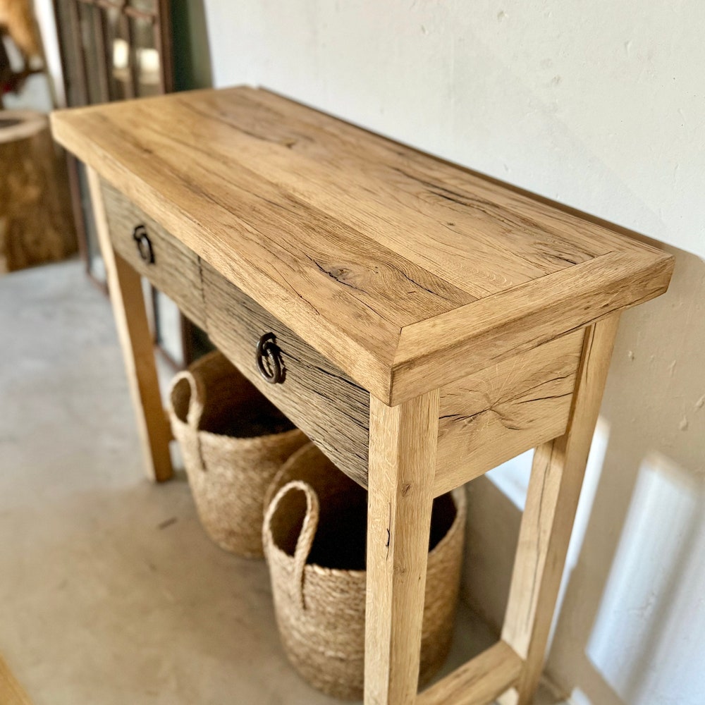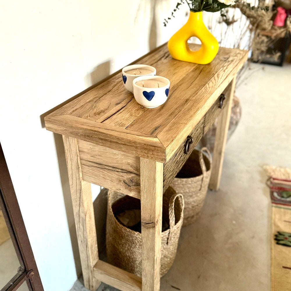 Narrow Console Table with Drawers, Reclaimed Wood Console Table, Rustic Console Table Narrow, Entryway Console Reclaimed Oak Furniture