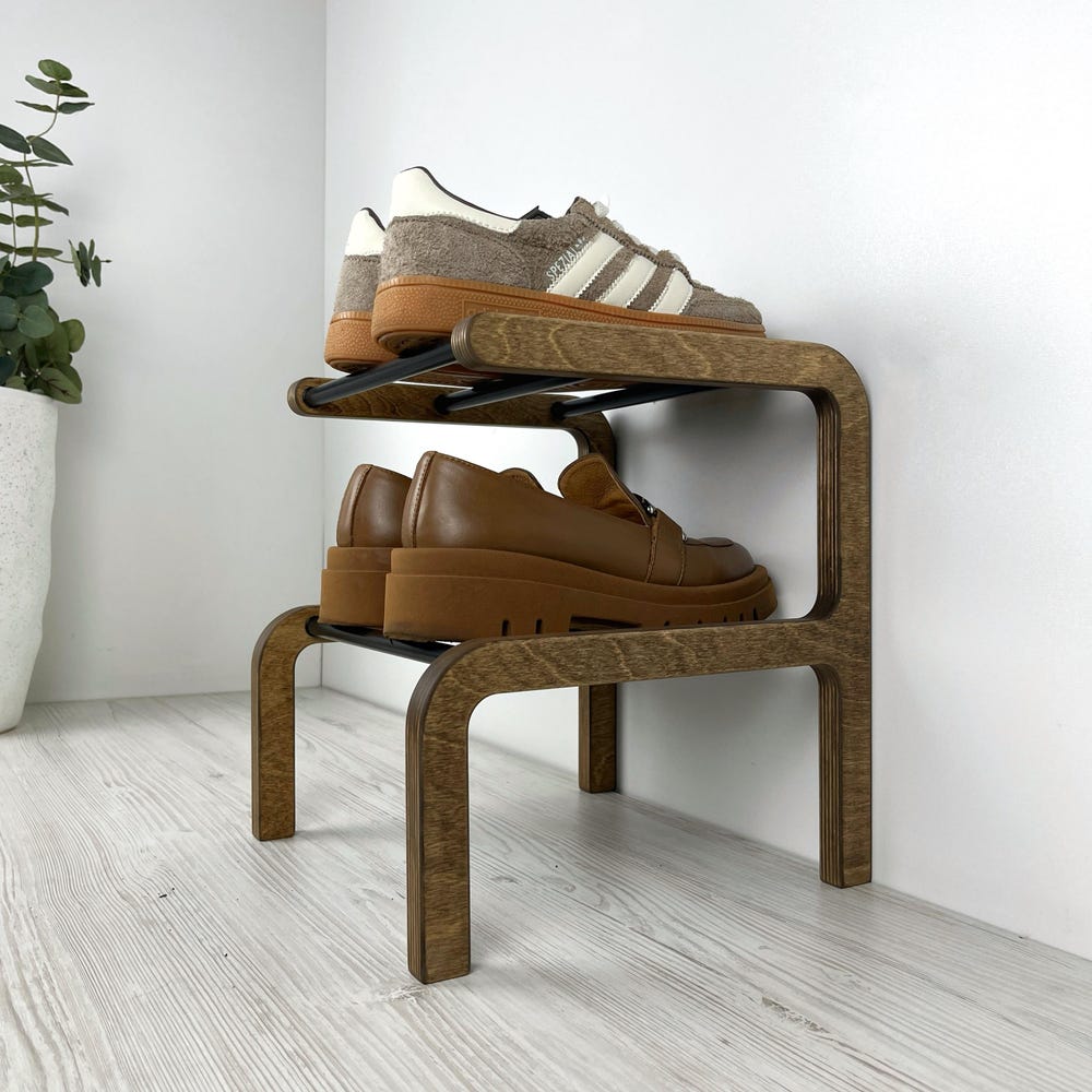 Tired of shoes spilling out all over your floor? This wood and metal shoe rack for entryway can help. Instantly create more space with its 2 tier of shoe storage, so you’ll never trip over a rogue sneaker again! So take the hassle out of shoe storage, and say hello to effortless organization.