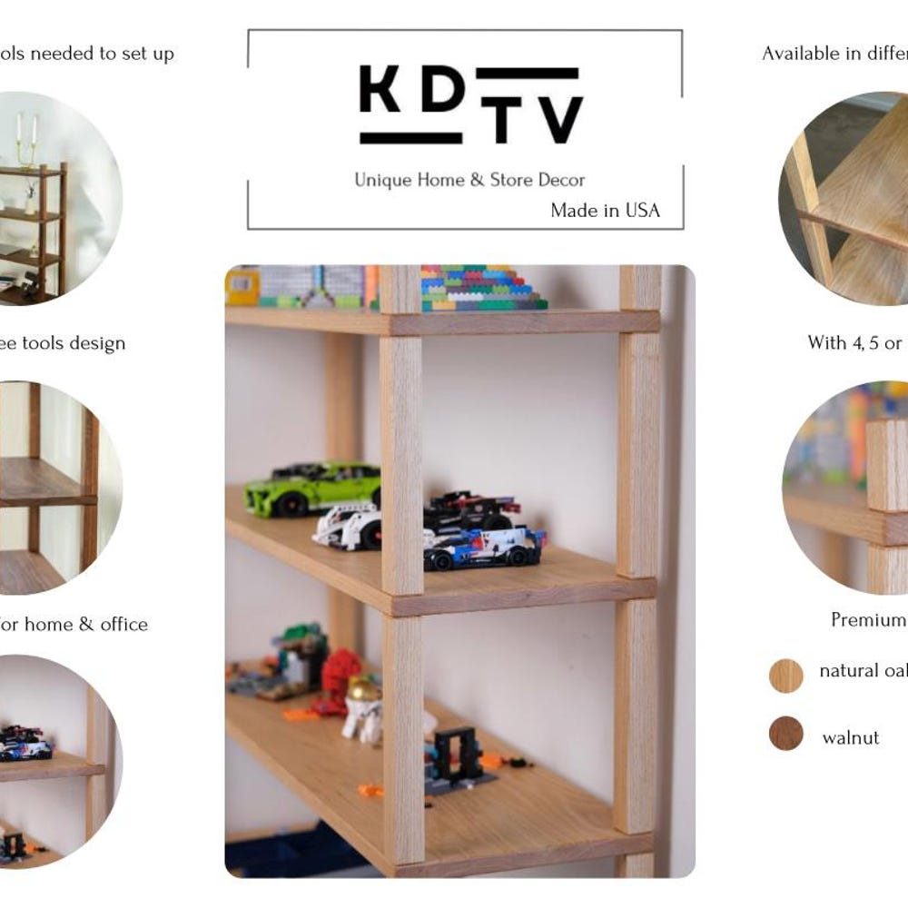 Easy organization of any space with this natural oak wood shelf! The perfect solution for the living room, bedroom, kids’ room, and office.