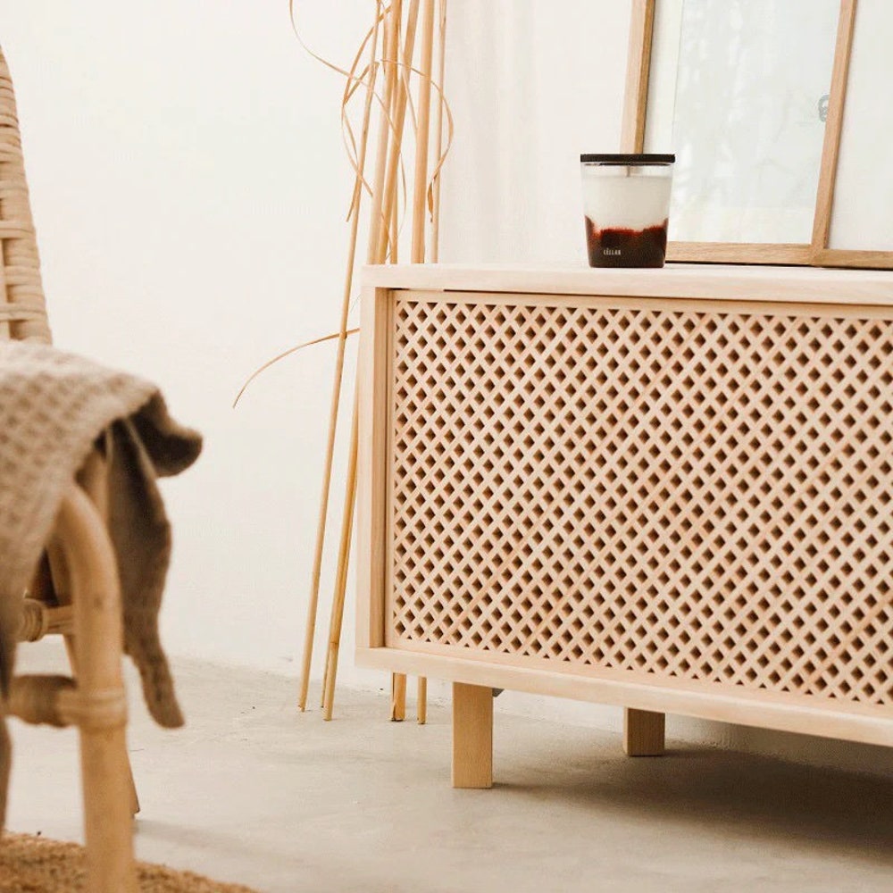 Our star material is the lattice door, handmade by expert cabinetmakers and craftsmen of our land. Its origin in the tradition of the old Mediterranean “fridge” adds a unique touch to your handmade furniture, along with a piece of history.