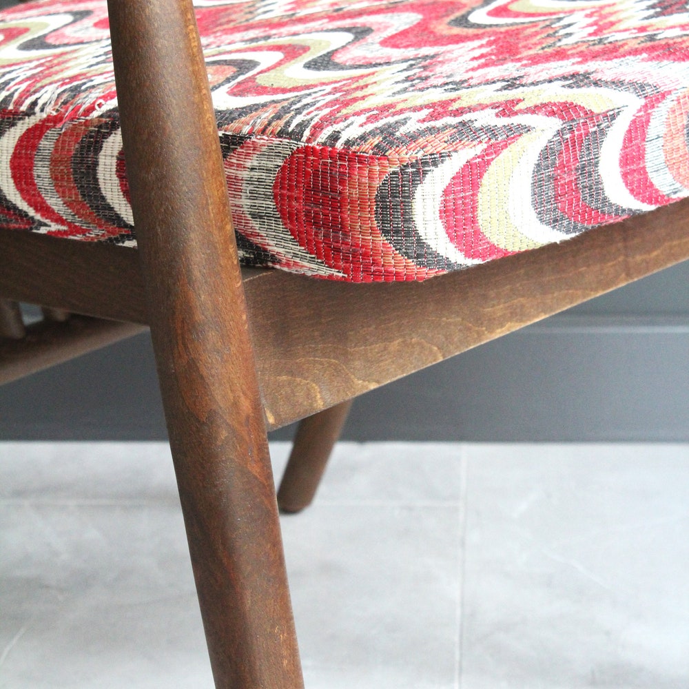 Its raw material is hornbeam wood. It can be lacquered in walnut wood, black and natural color. Fully customized fabric colors are available.