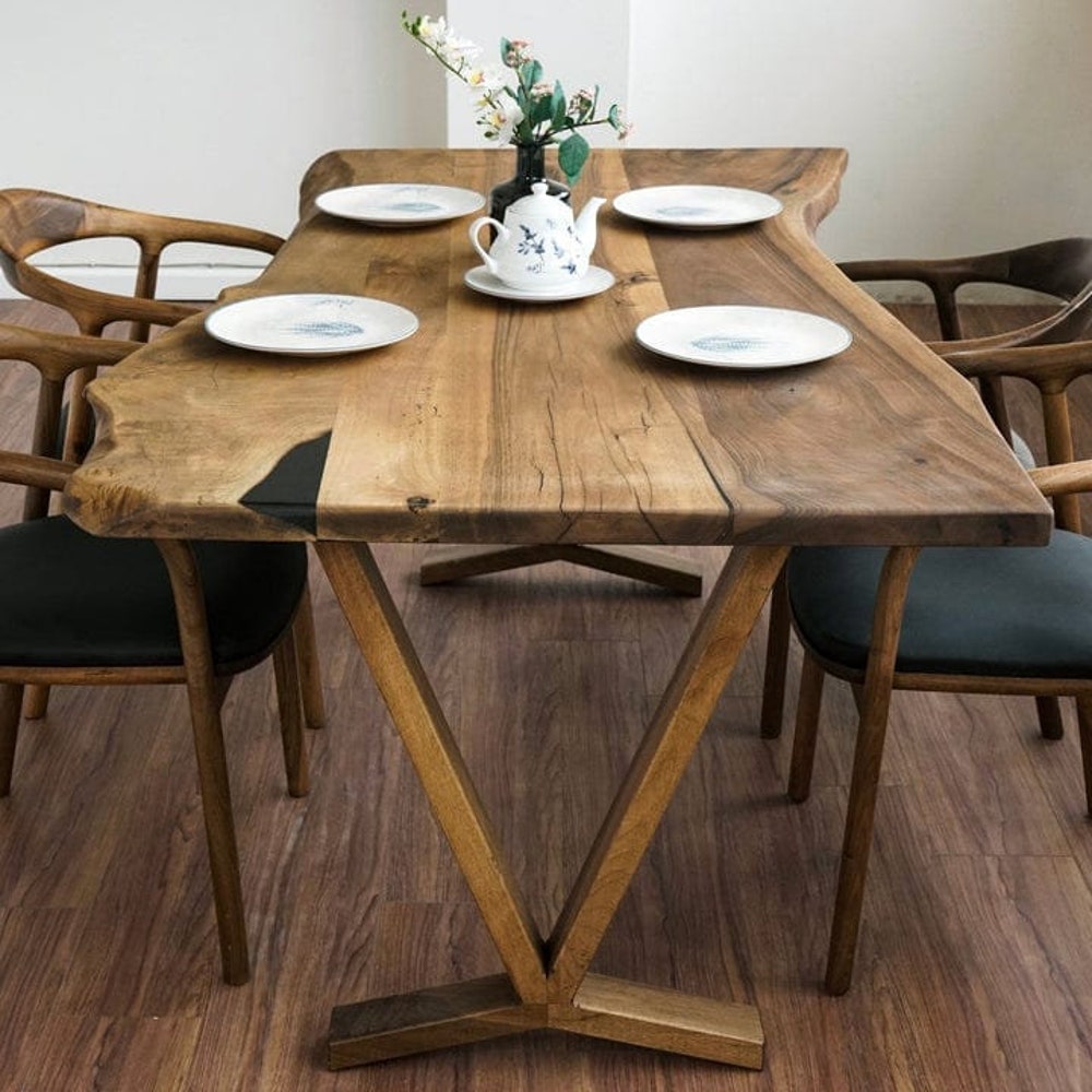 Elevate your dining space with our stunning natural walnut dining table. Handcrafted with a beautiful live edge design on a solid wood table top, this piece is perfect for your living room or as a unique desk. Bring nature’s beauty into your home with this one-of-a-kind statement piece!