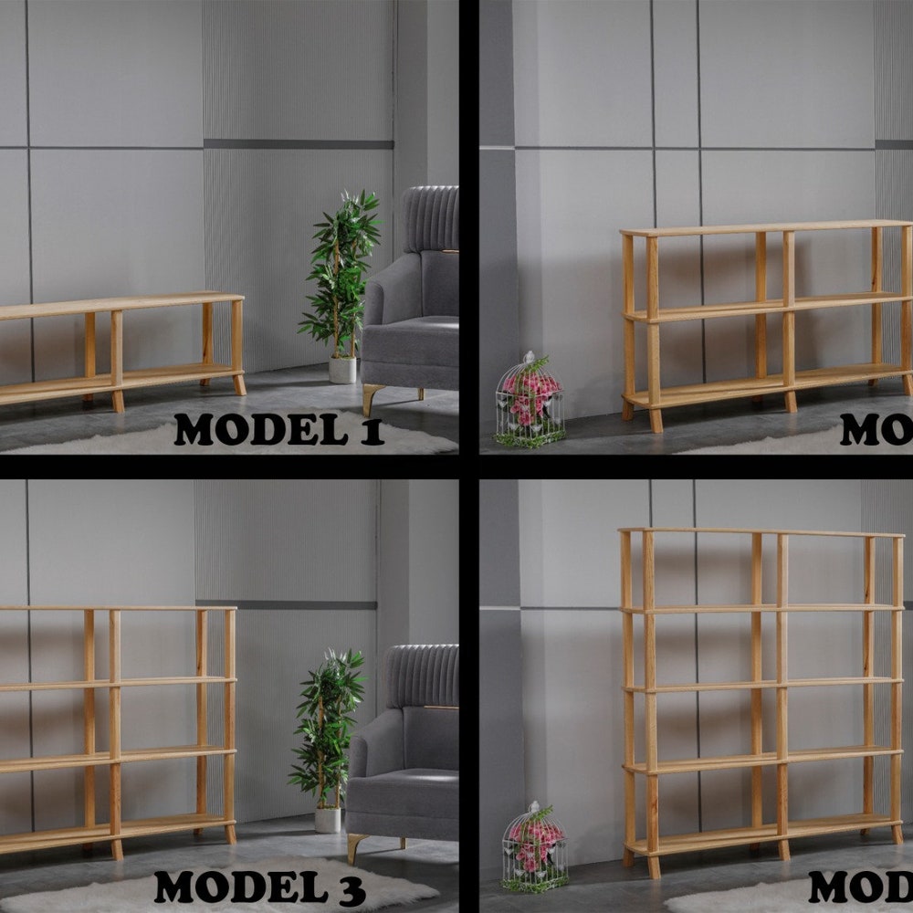 This elegant and versatile shelving unit adds warmth to your living spaces and meets your needs with its functional structure. This modern bookcase, where you can display your books, plants and decorative objects, is an ideal choice especially for those who love naturalness and simple elegance.
