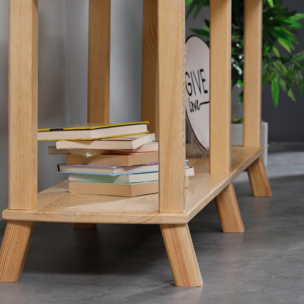 Natural Wood Bookcase – Add a simple and elegant touch to modern living spaces! This minimalist wooden shelving unit brings both aesthetics and functionality to your decoration with its natural wood look and sturdy structure. Our product is designed to offer a solution to your storage space needs at home or in the office and is a product that you can use for many years with its durability.