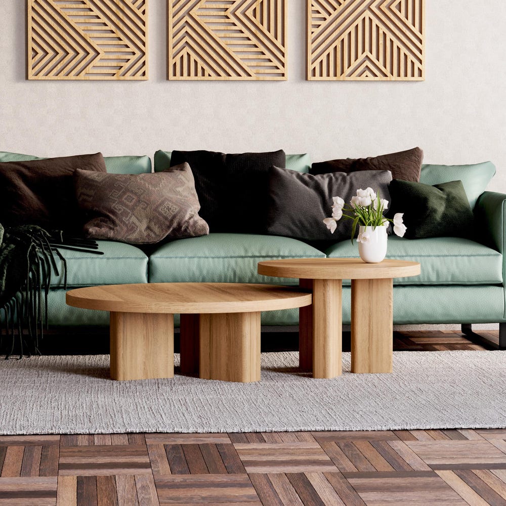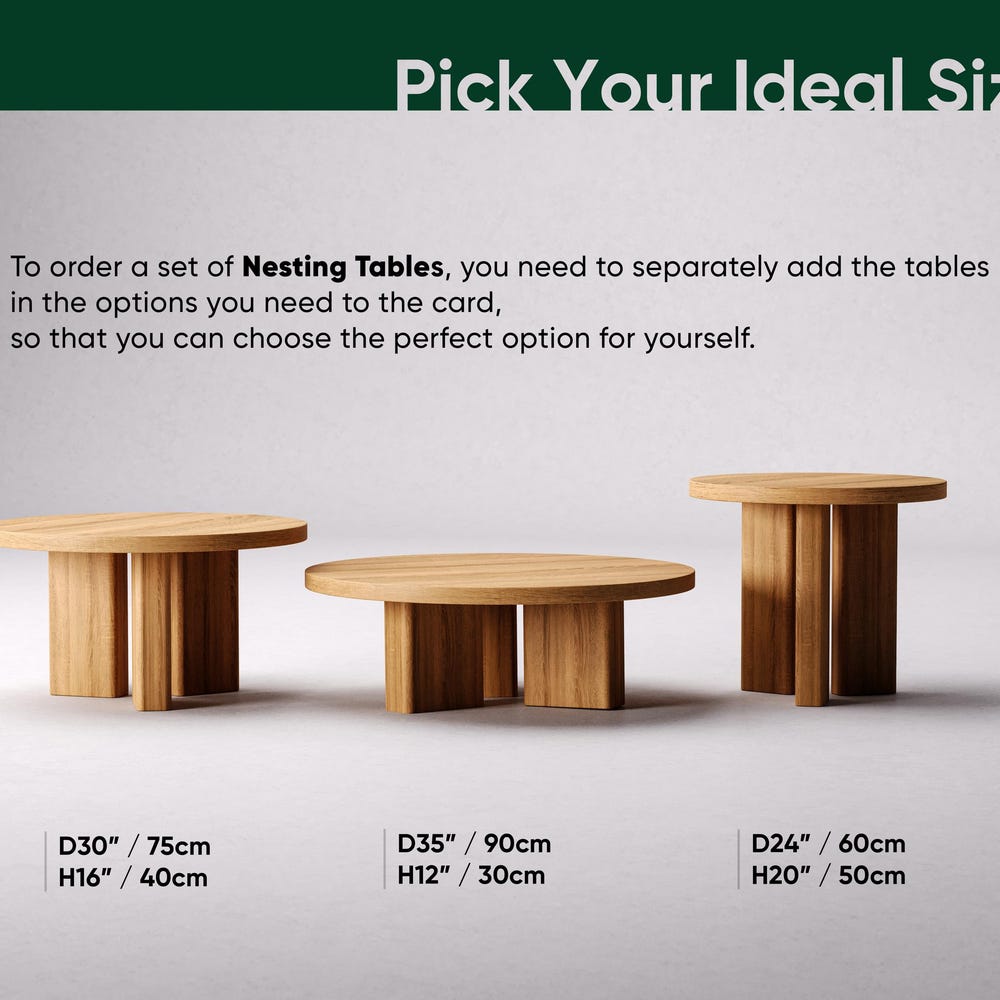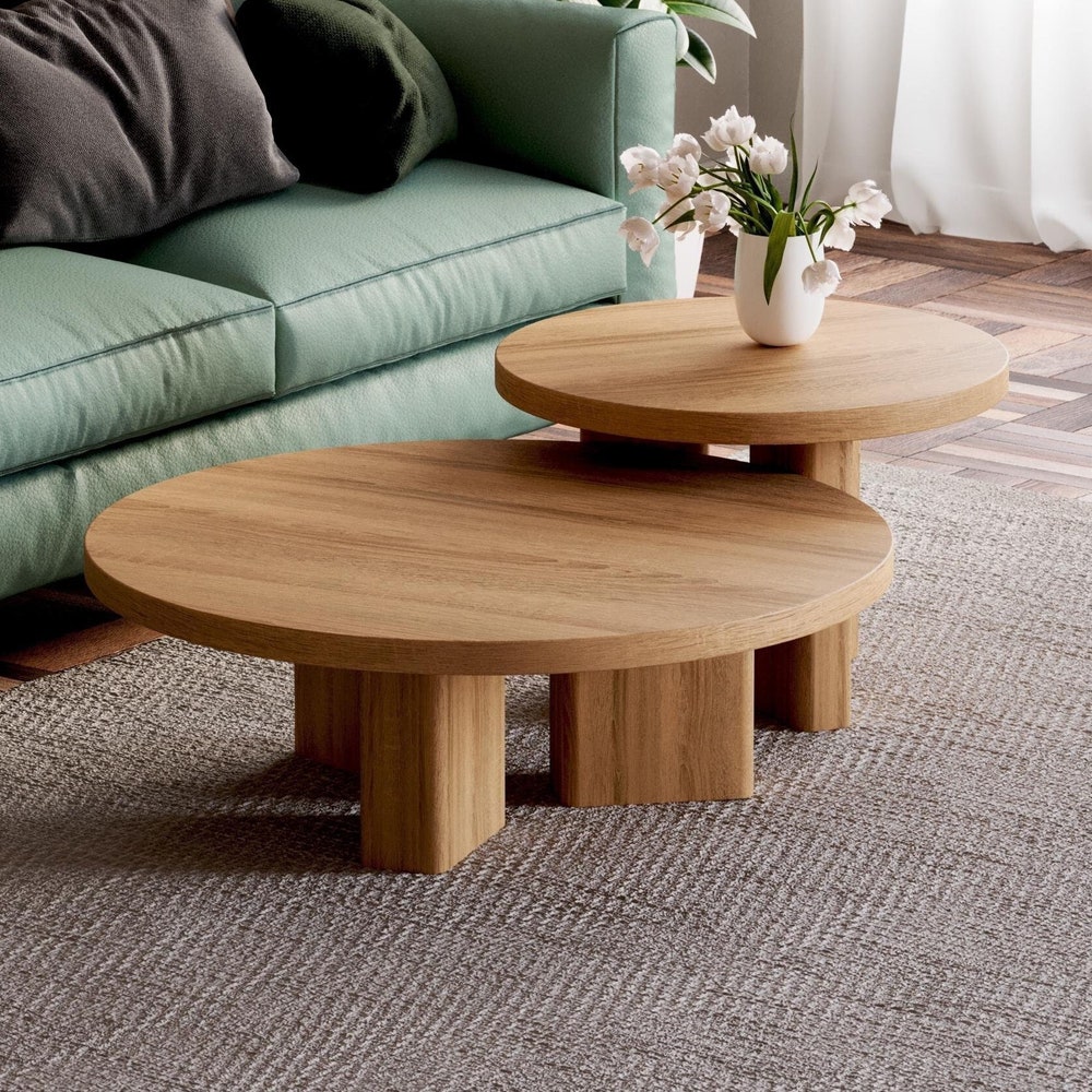 Nesting Coffee Tables – Round Nesting Tables Set – Solid Oak Coffee Table – Minimalist Coffee Table – Japandi Furniture -Wood Nesting Tables