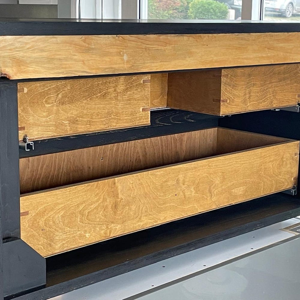 MADE TO ORDER HIGH QUALITY HANDMADE BLACK PAINTED WOOD VANITY COMPATIBLE WITH ATAMARBLE SINKS (SINKS ARE SOLD SEPARATELY)