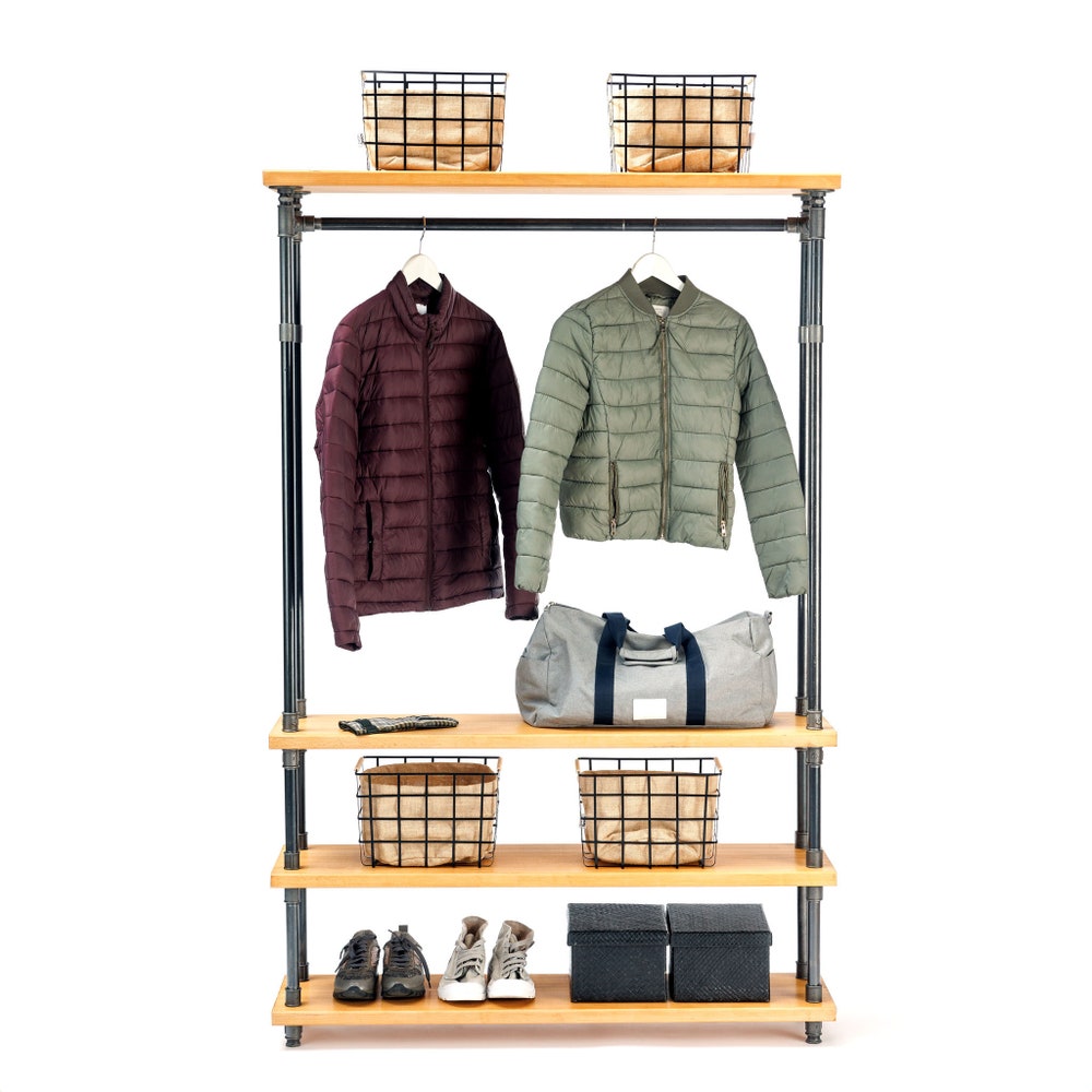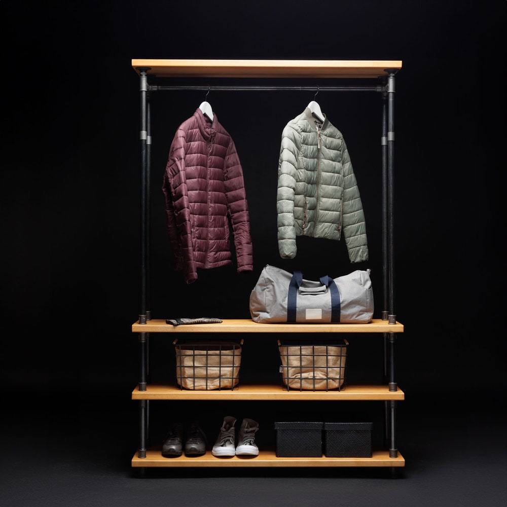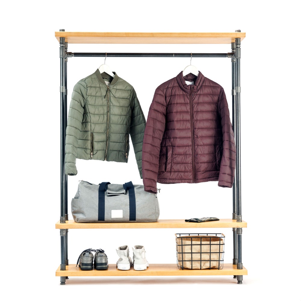 Handmade industrial clothes rack, minimalist interior coat rail, stand clothing hanger.