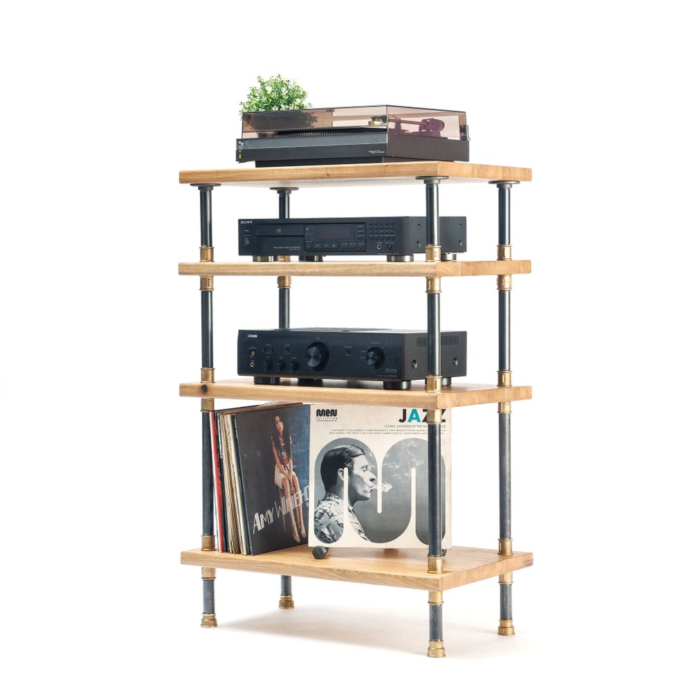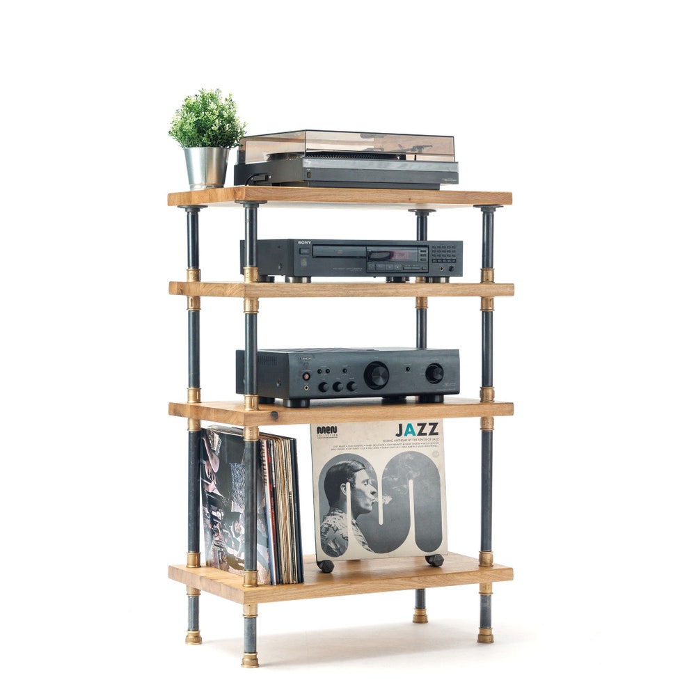 NEW-OAK WOOD & Gold Turntable Storage, Reclaimed Wood Furniture, Handmade Record Player Stand, Industrial Vinyl Table, Media Hifi, Tv Unit