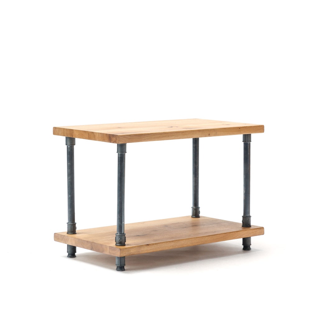 NEW-OAK WOOD, Industrial end table, reclaimed wood table,rustic end table, rustic night stand, pipe and wood end table, farmhouse table