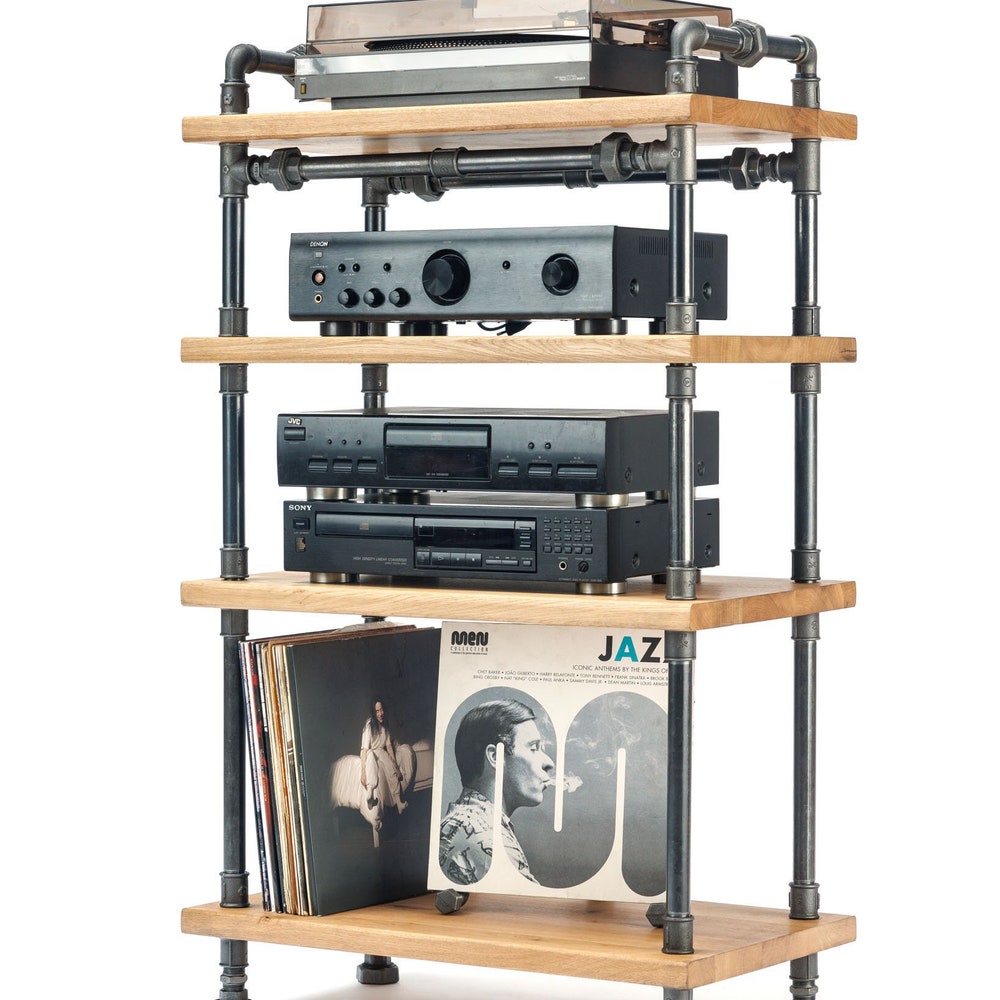 2 in 1 Rack variation, Turntable Stand, Wood Furniture, Handmade Record Player Stand, Industrial Vinyl Table, Media Hifi TV Unit