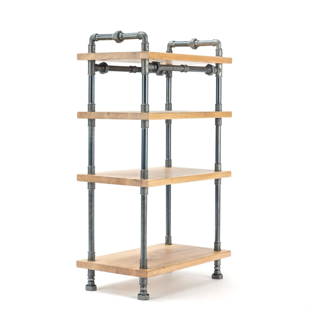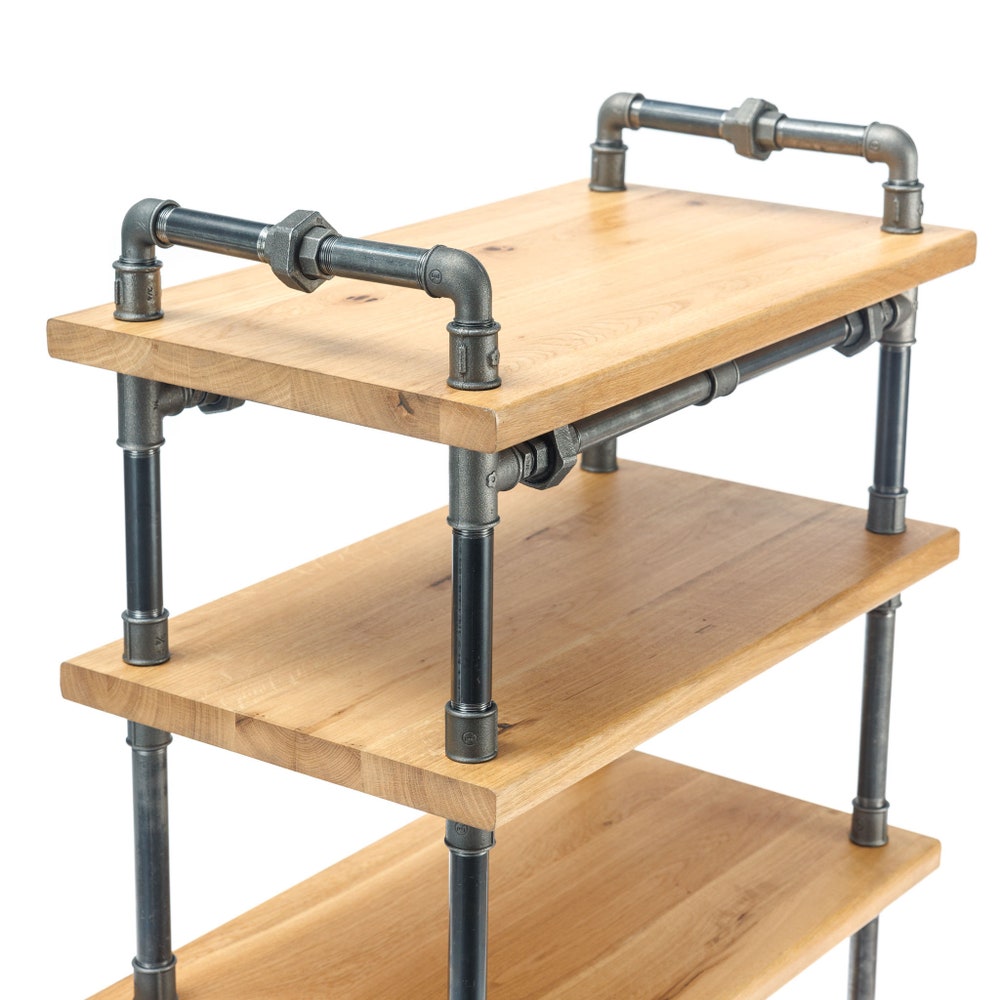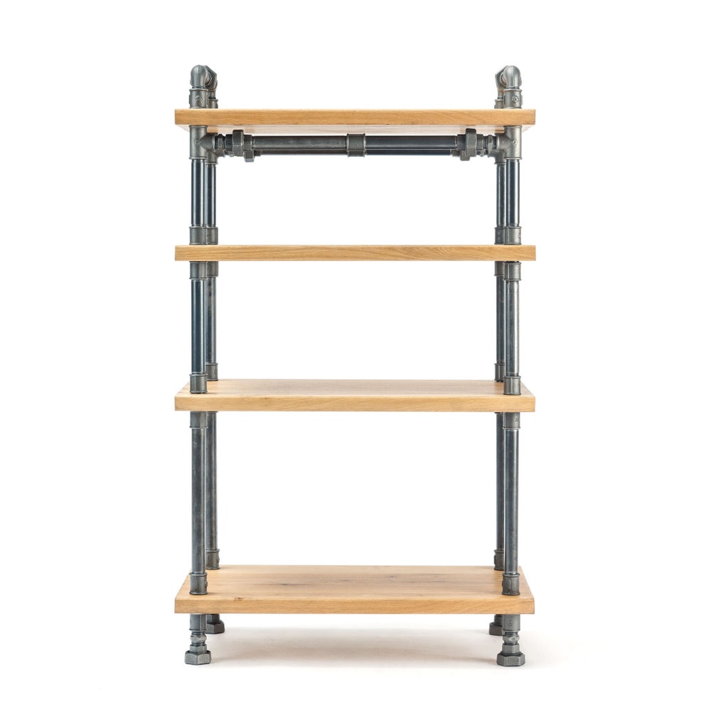 – 30 kg – 4 tier rack standard dimensions 58*40 cm from industrial pipe/threaded rods/solid beech wood panels;