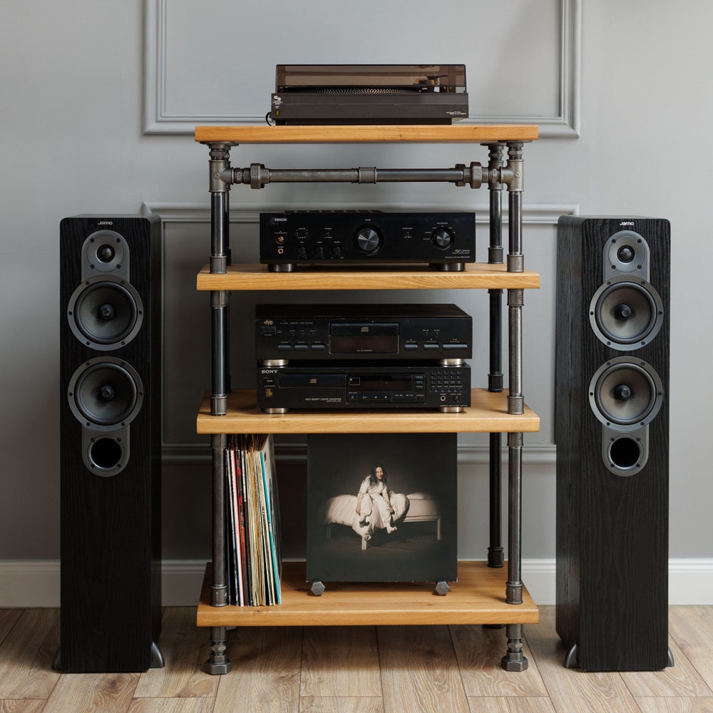 2 in 1 Rack variation, Turntable Stand, Wood Furniture, Handmade Record Player Stand, Industrial Vinyl Table, Media Hifi TV Unit