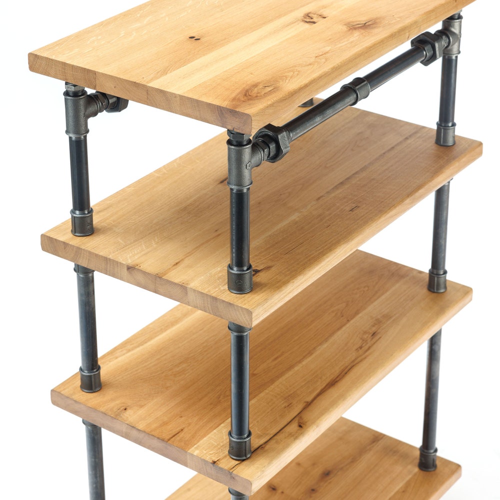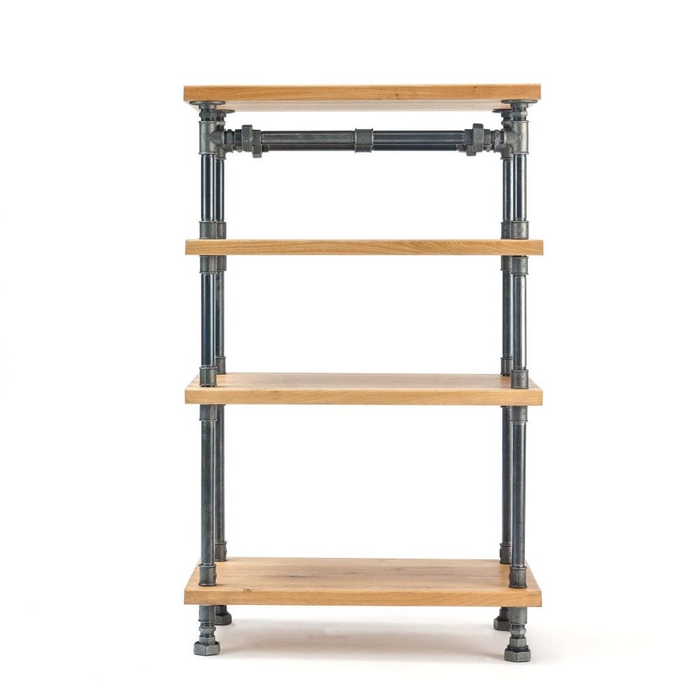 – 30 kg – 4 tier rack standard dimensions 58*40 cm from industrial pipe/threaded rods/solid beech wood panels;