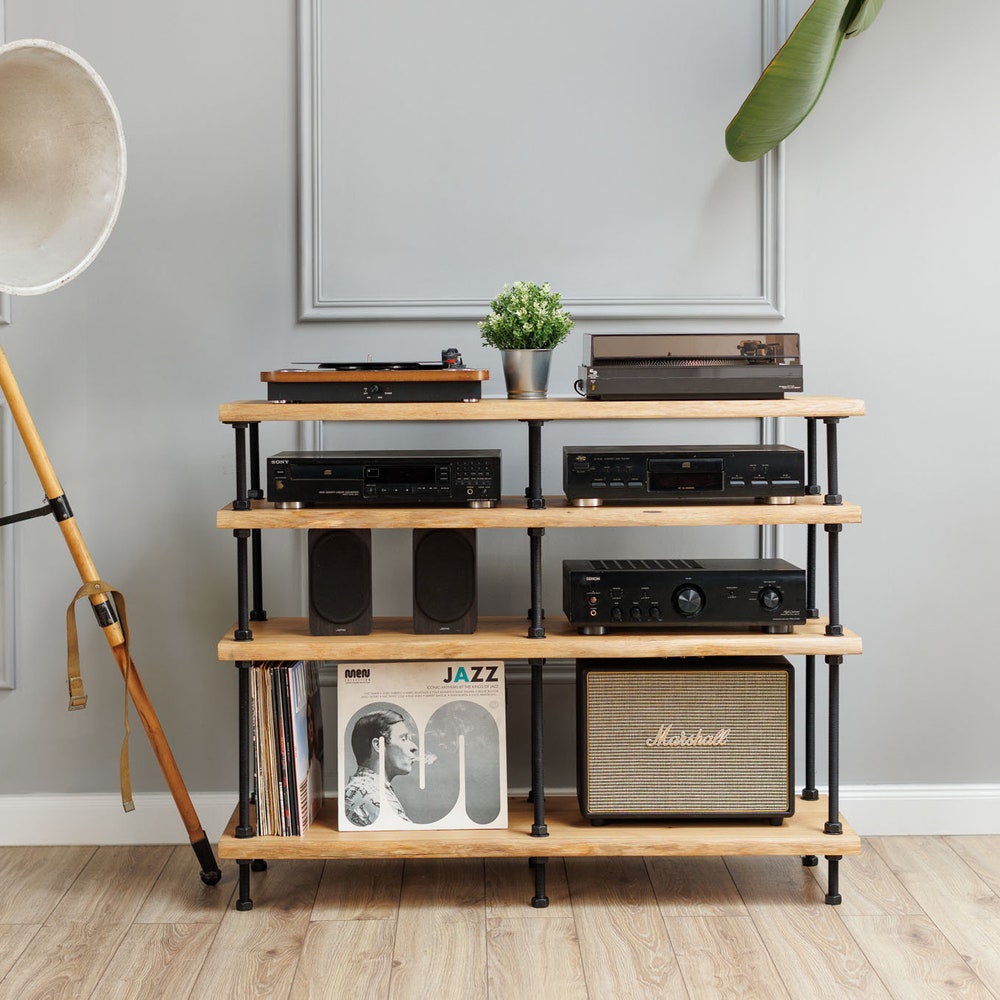 2 in 1 Rack variation, Turntable Stand, Wood Furniture, Handmade Record Player Stand, Industrial Vinyl Table, Media Hifi TV Unit