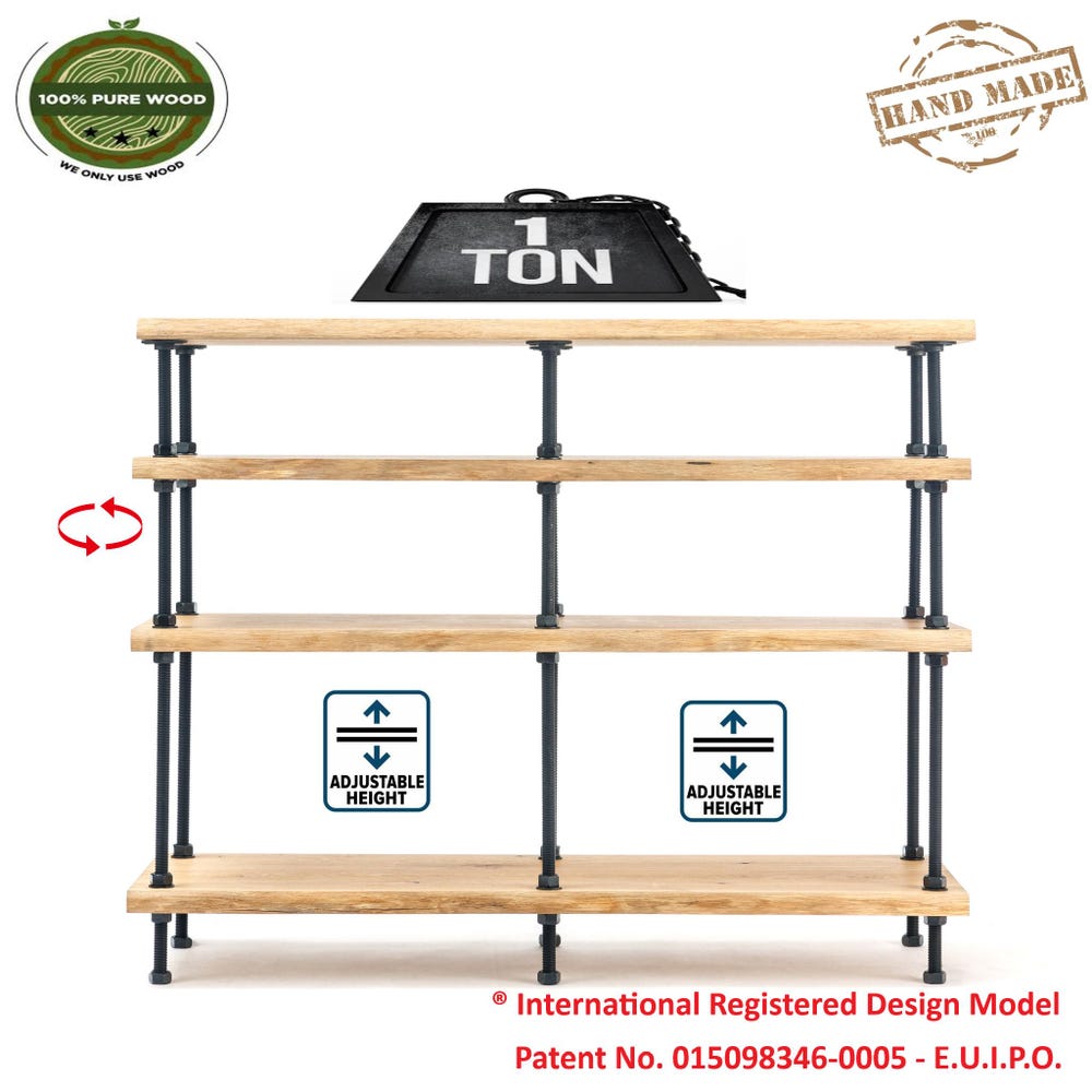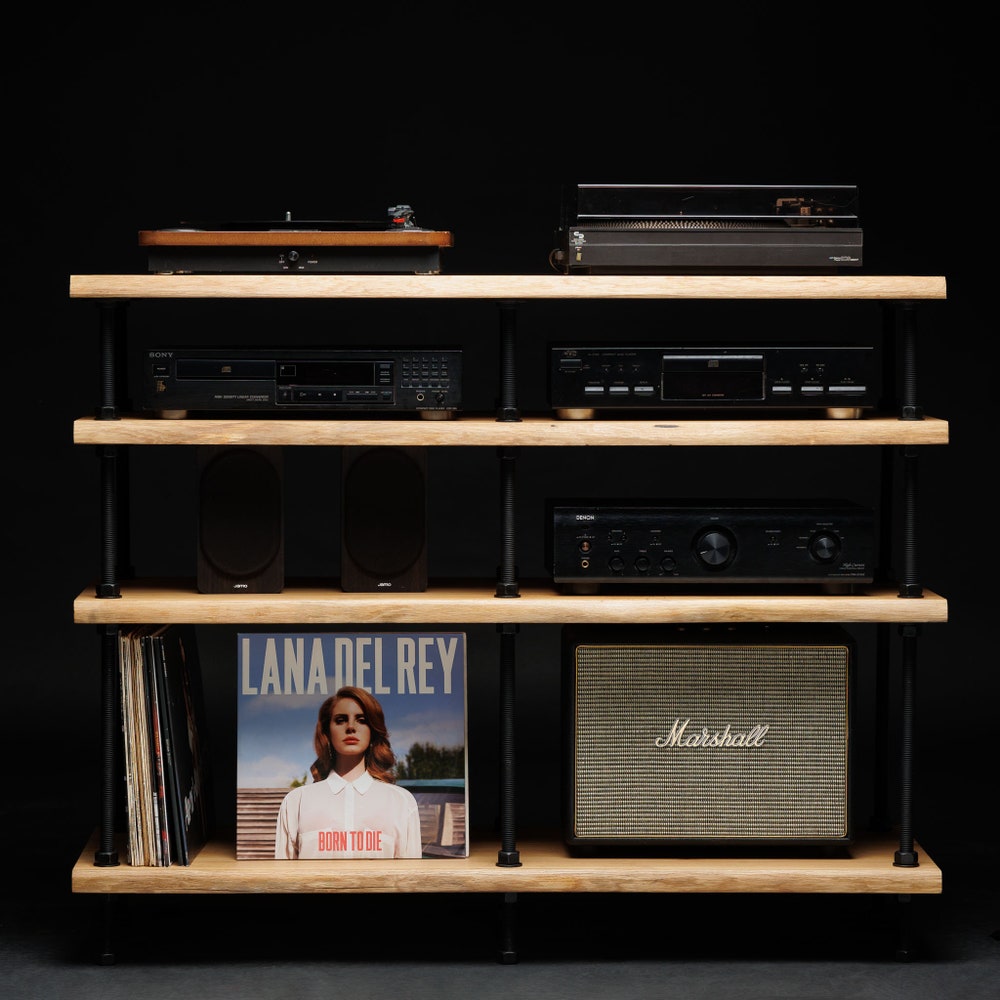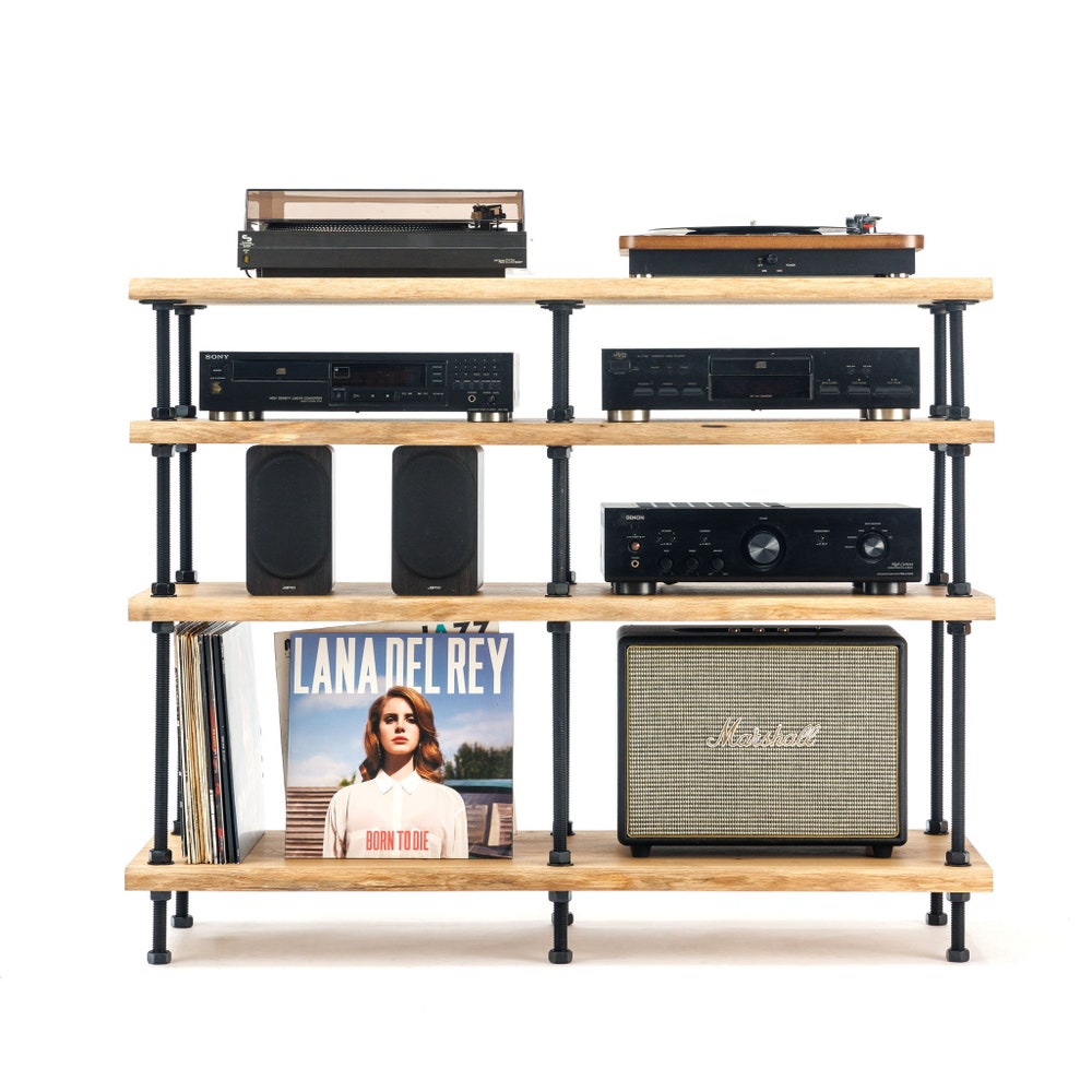 NEW-OAK WOOD, Registered design stand, 4 Tier Threaded Rods Double stand, Lp Turntable Storage, Record Player Stand, Industrial Vinyl Table