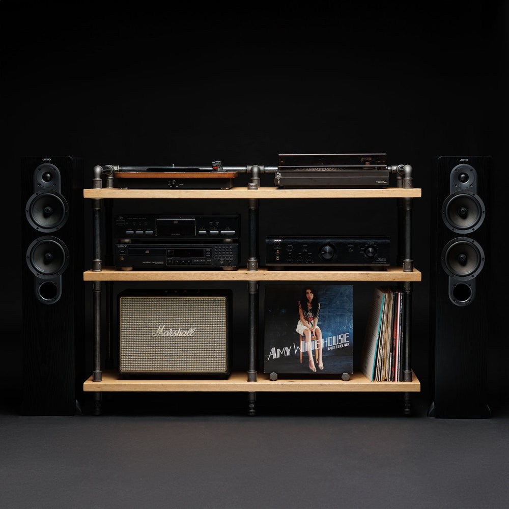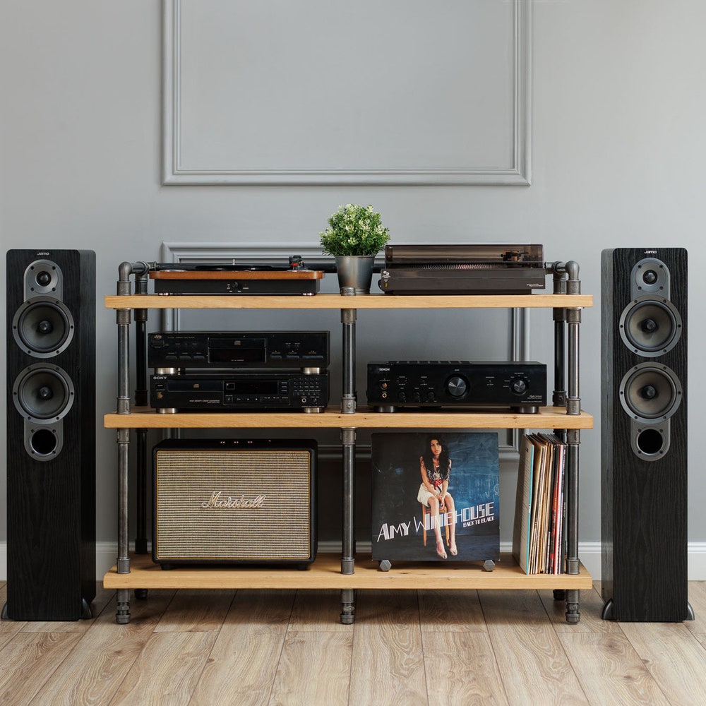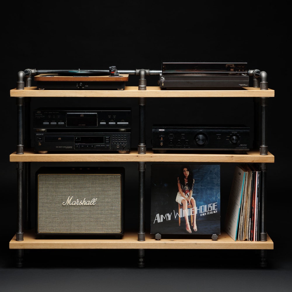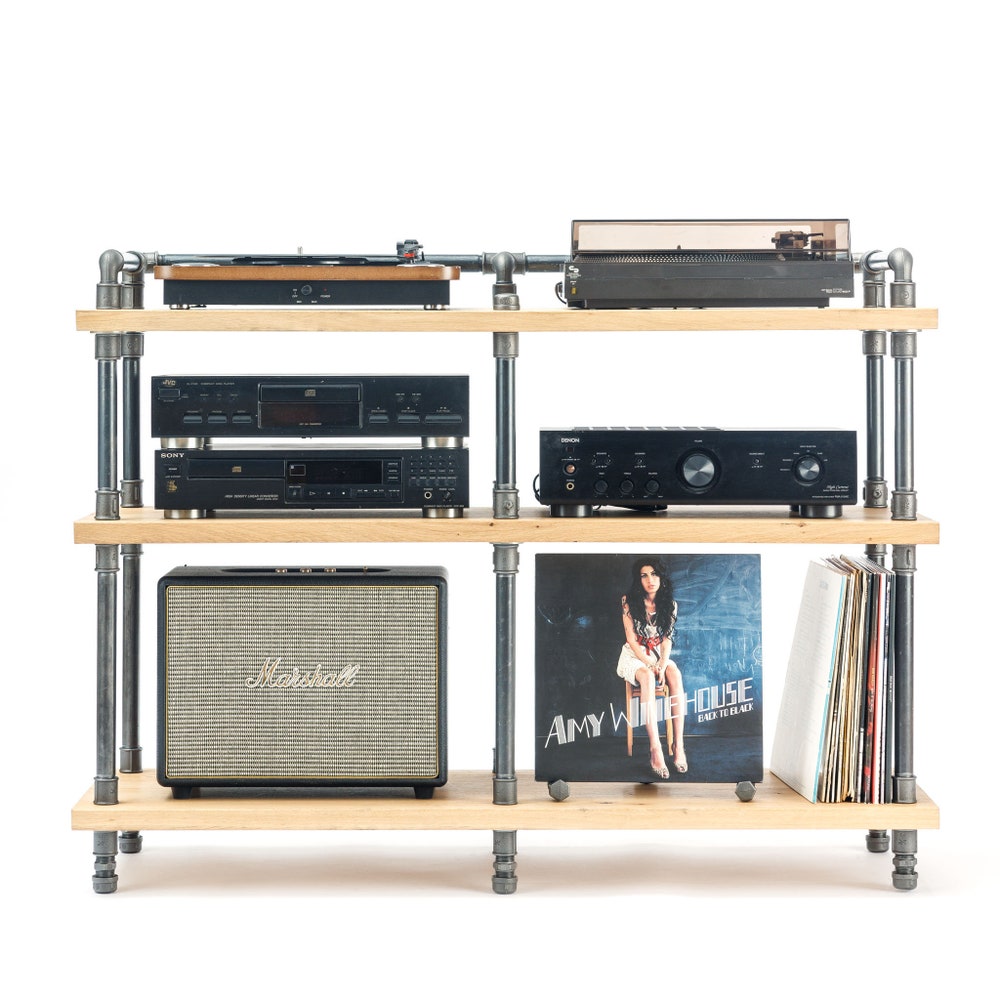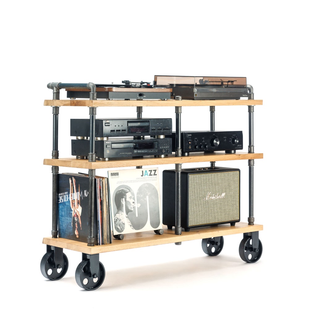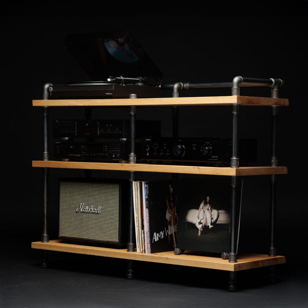 2 in 1 Rack variation, Turntable Stand, Wood Furniture, Handmade Record Player Stand, Industrial Vinyl Table, Media Hifi TV Unit