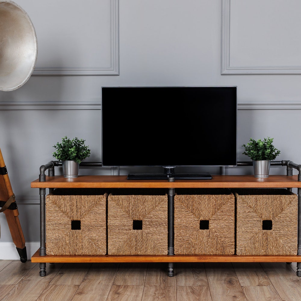 Simple aesthetic design this what makes these shoe rack/media console catch the eye. Beautiful and sturdy shoe rack made of reclaimed wood and metal tubes.
