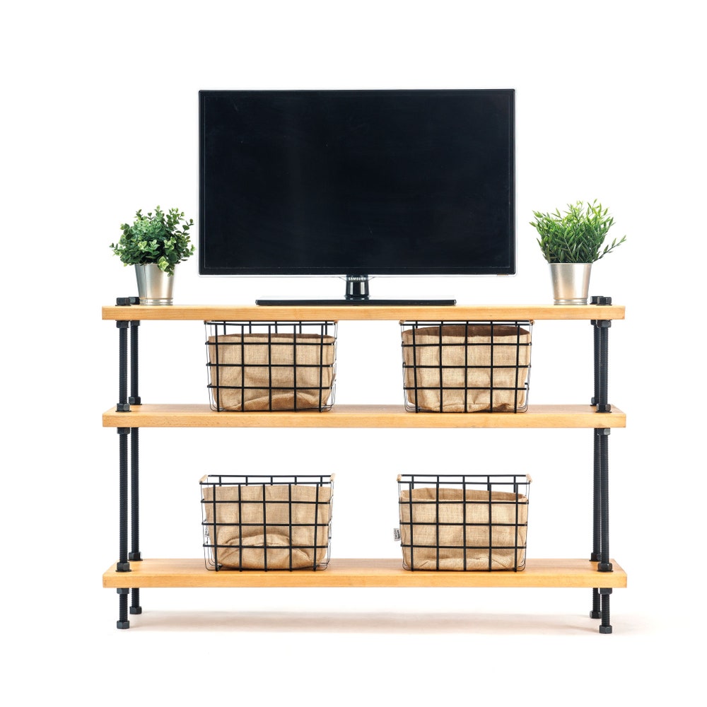 Simple aesthetic design this what makes these shoe rack/media console catch the eye. Beautiful and sturdy shoe rack made of reclaimed wood and metal tubes.