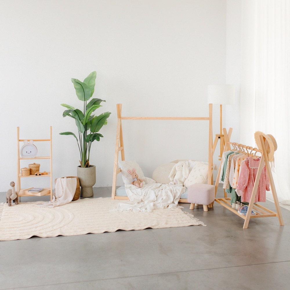 Introducing our stylish and functional Clothing Rack with Shelves and Hangers, perfect for organizing your little one’s wardrobe!